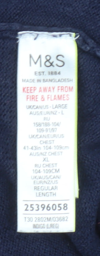 Marks and Spencer Men’s Blue Cotton V-Neck Pullover Jumper L