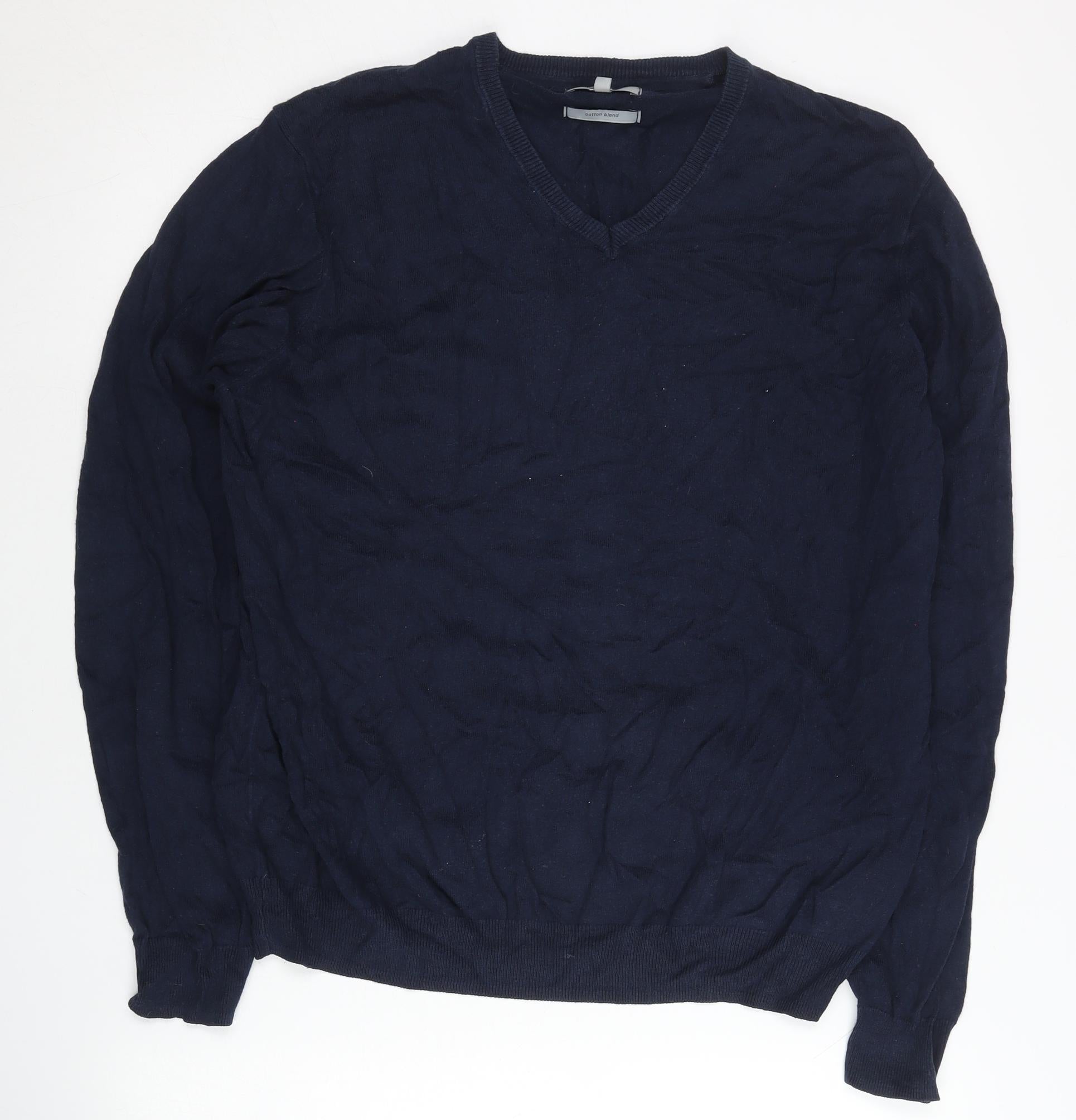 Marks and Spencer Men’s Blue L V-Neck Regular Fit Cotton Jumper
