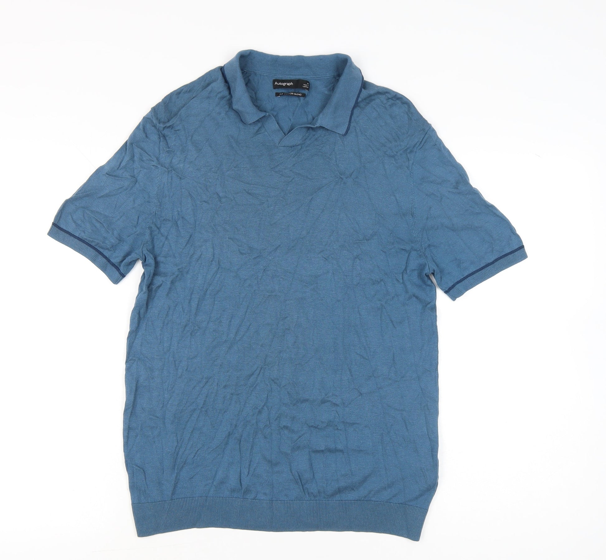 Marks and Spencer Men’s Blue Silk Cotton Polo Shirt M Regular Fit