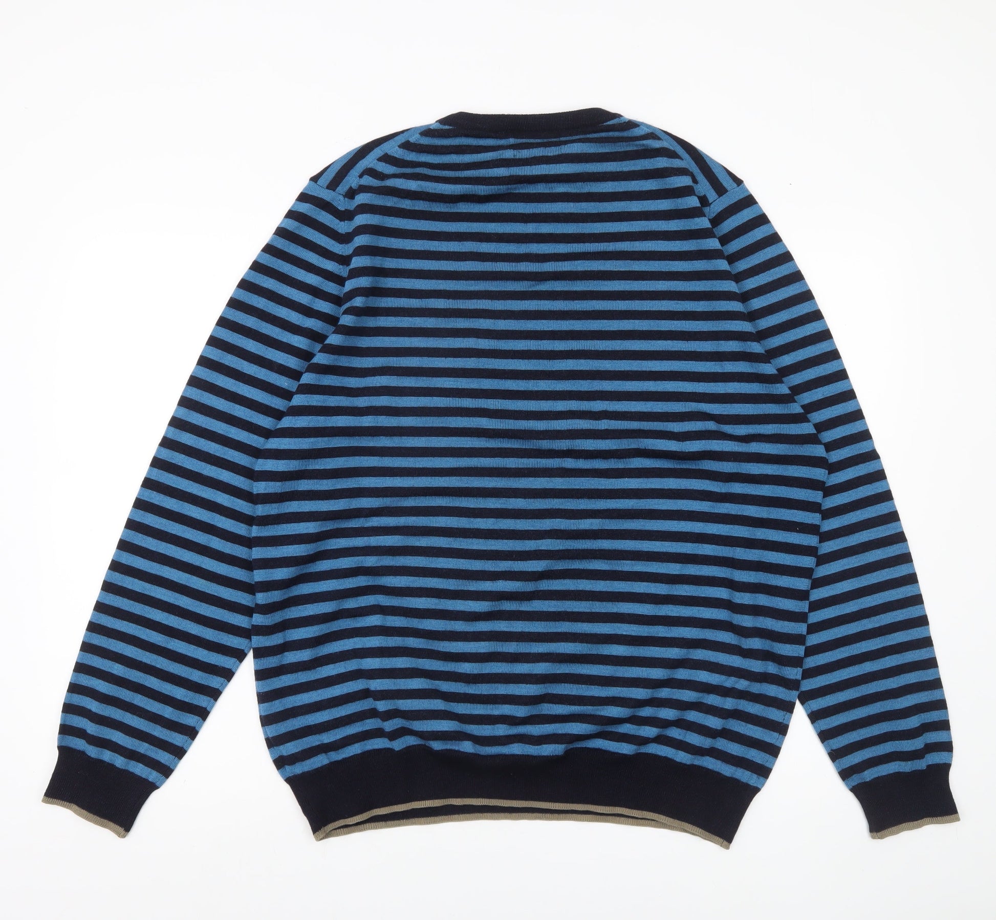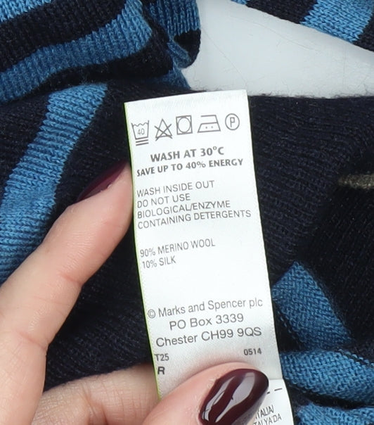 Marks and Spencer Men’s Blue Striped Slim Fit 2XL Merino Wool Silk Jumper