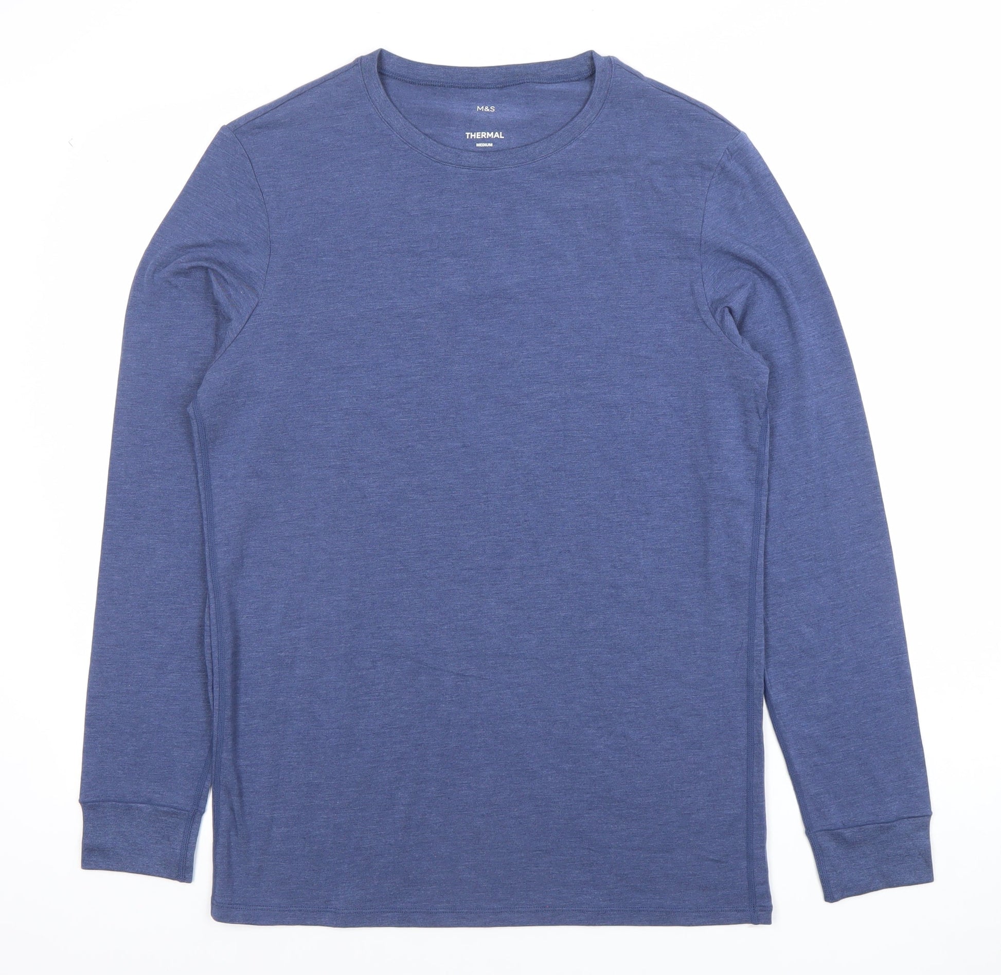 Marks and Spencer Men’s Blue Thermal Long Sleeve T-Shirt Medium