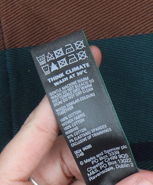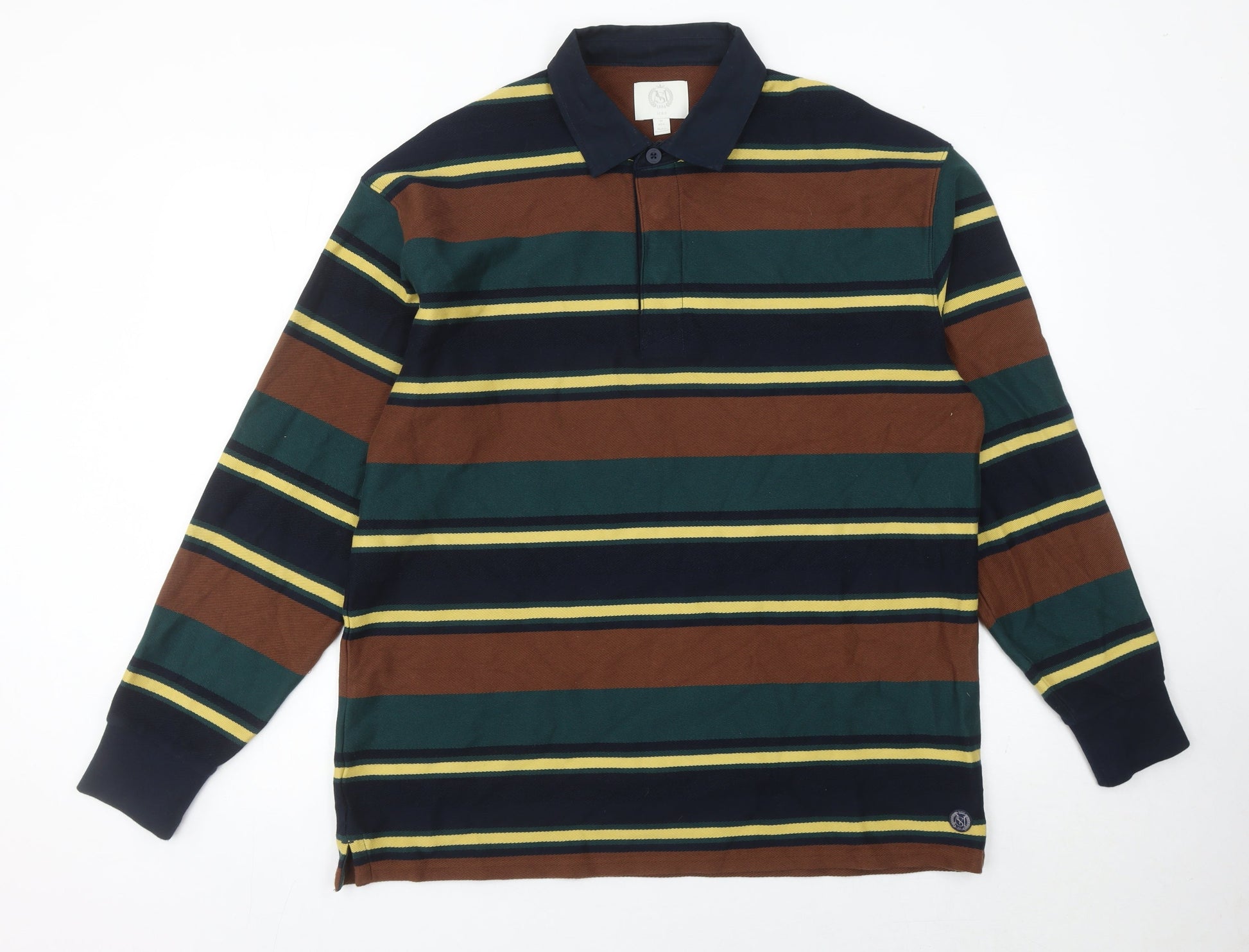 Marks and Spencer Men’s Brown Green Striped Polo Shirt Size M Long Sleeve