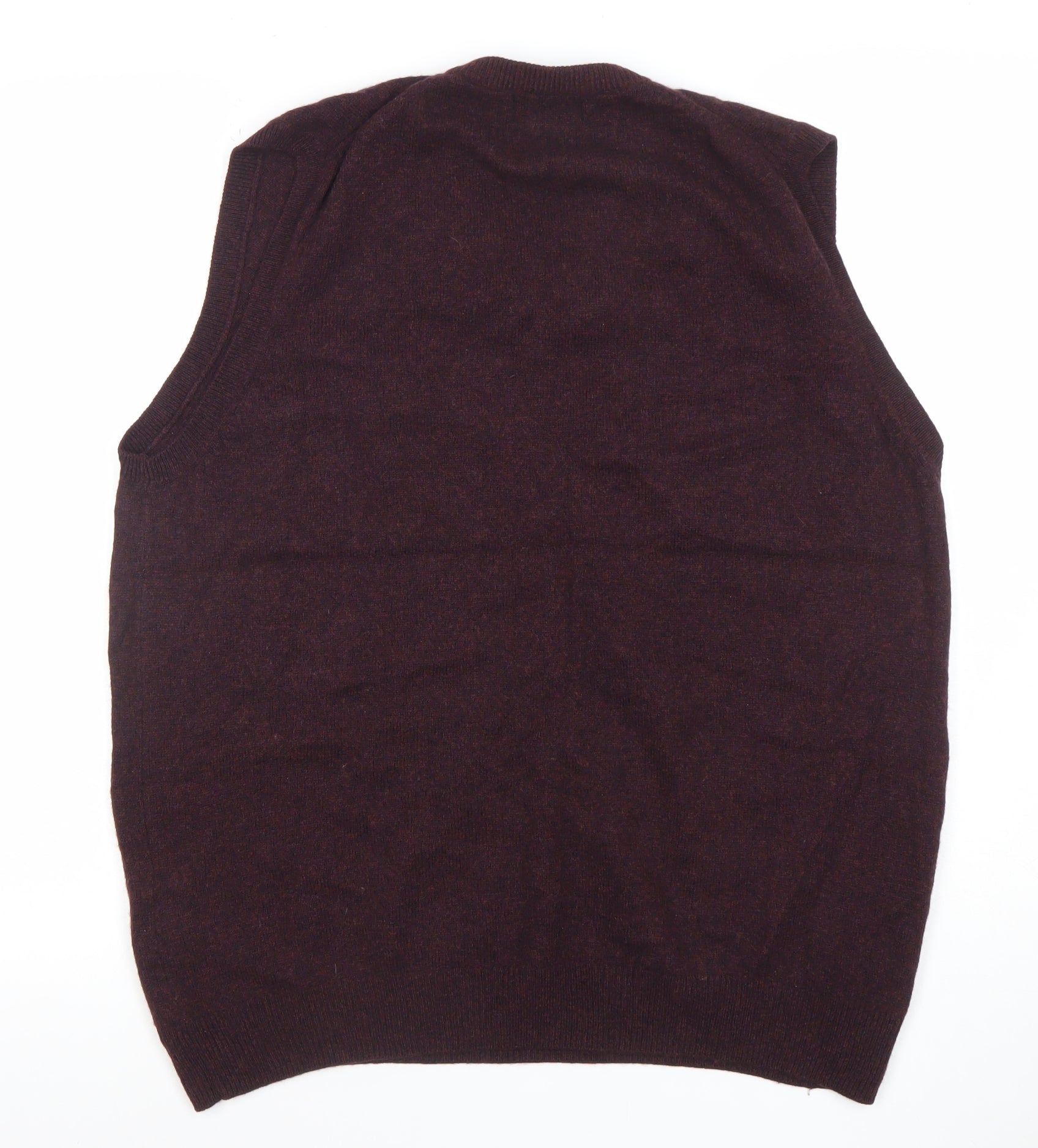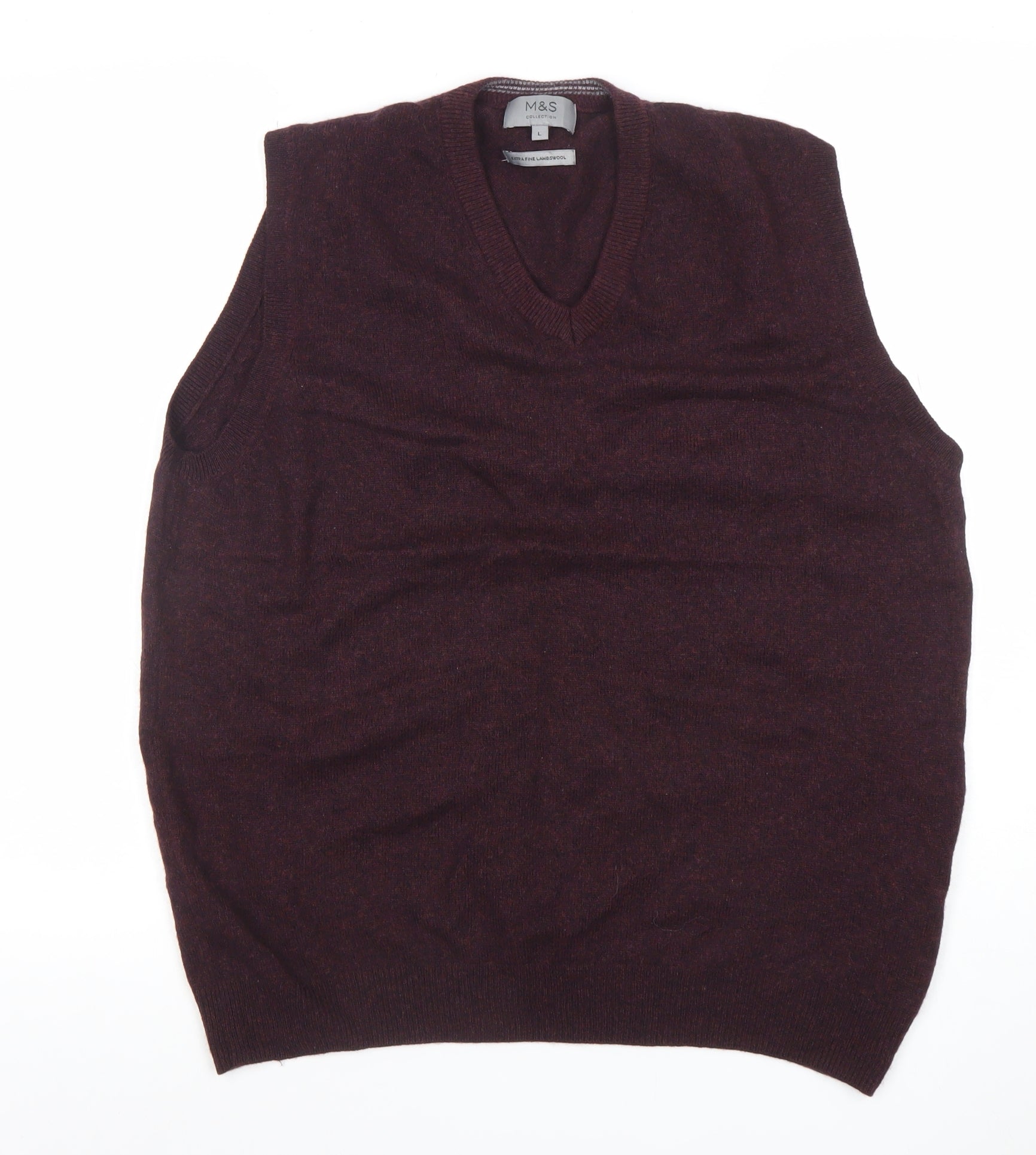 Marks and Spencer Men’s Brown Lambswool V-Neck Sleeveless Jumper Vest L