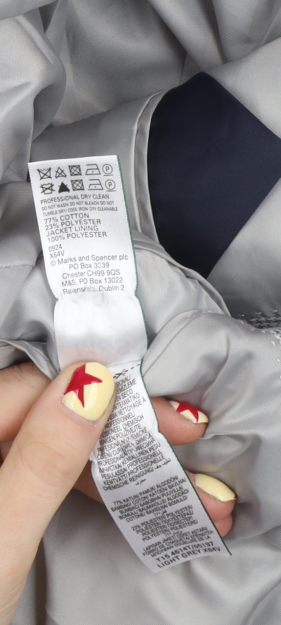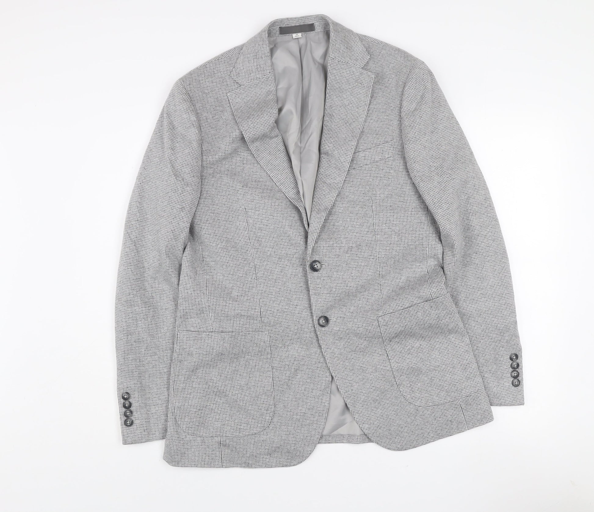 Marks and Spencer Men’s Grey Check Blazer Jacket 38R Cotton Blend