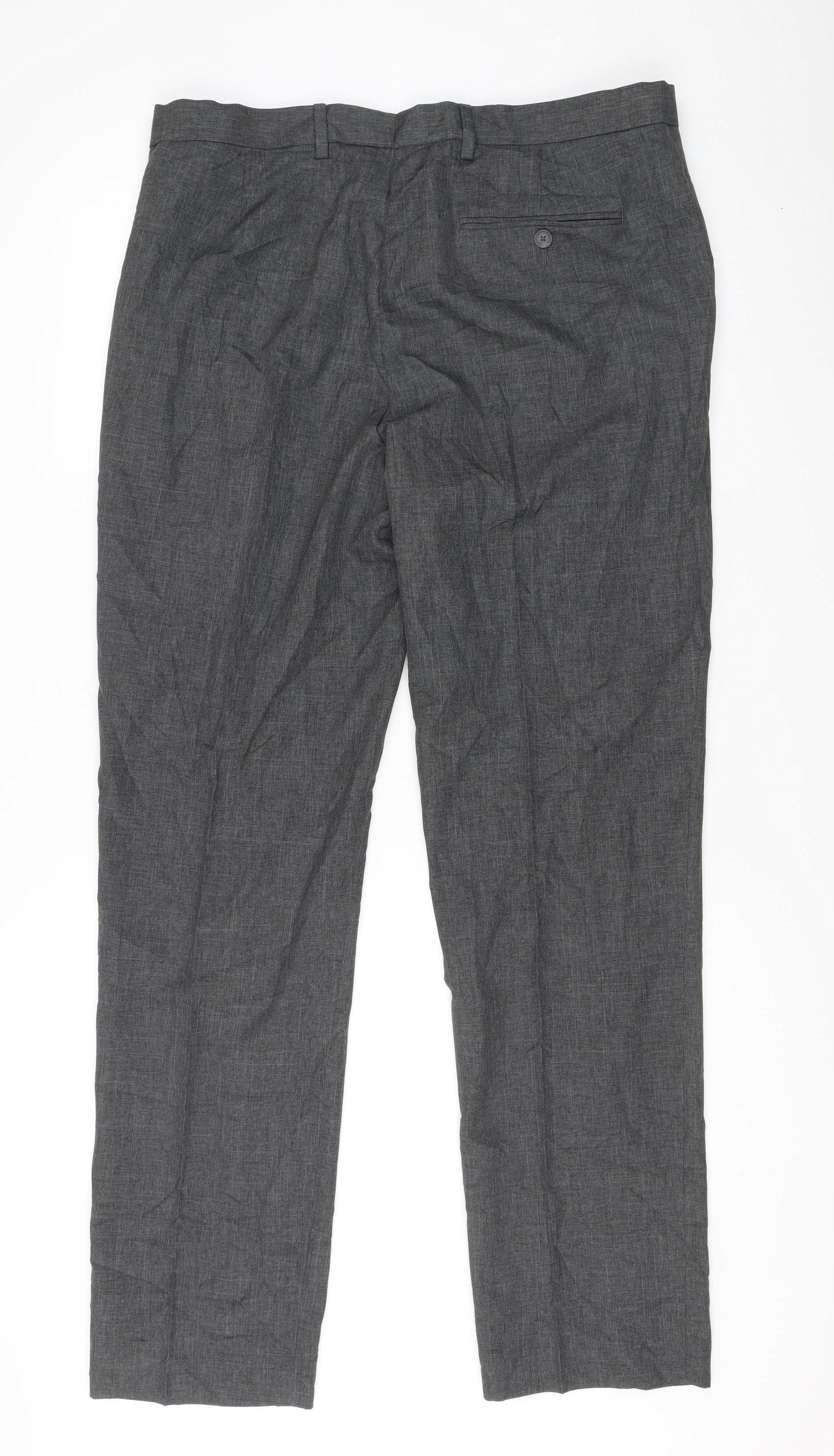 Marks and Spencer Men’s Grey Pleated Dress Trousers 36x33 Regular Fit