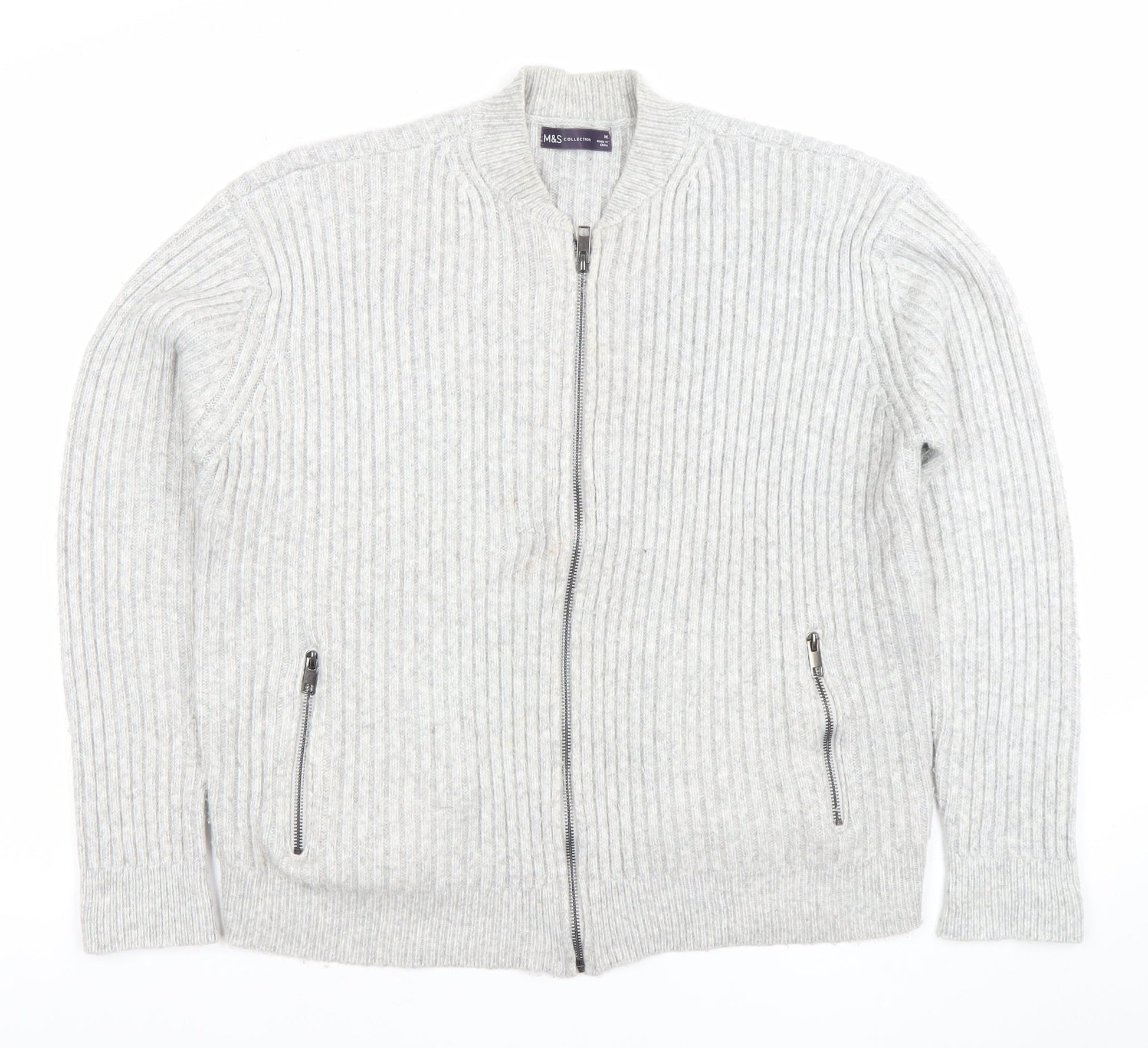 Marks and Spencer Men’s Grey Wool Blend Full Zip Jumper M