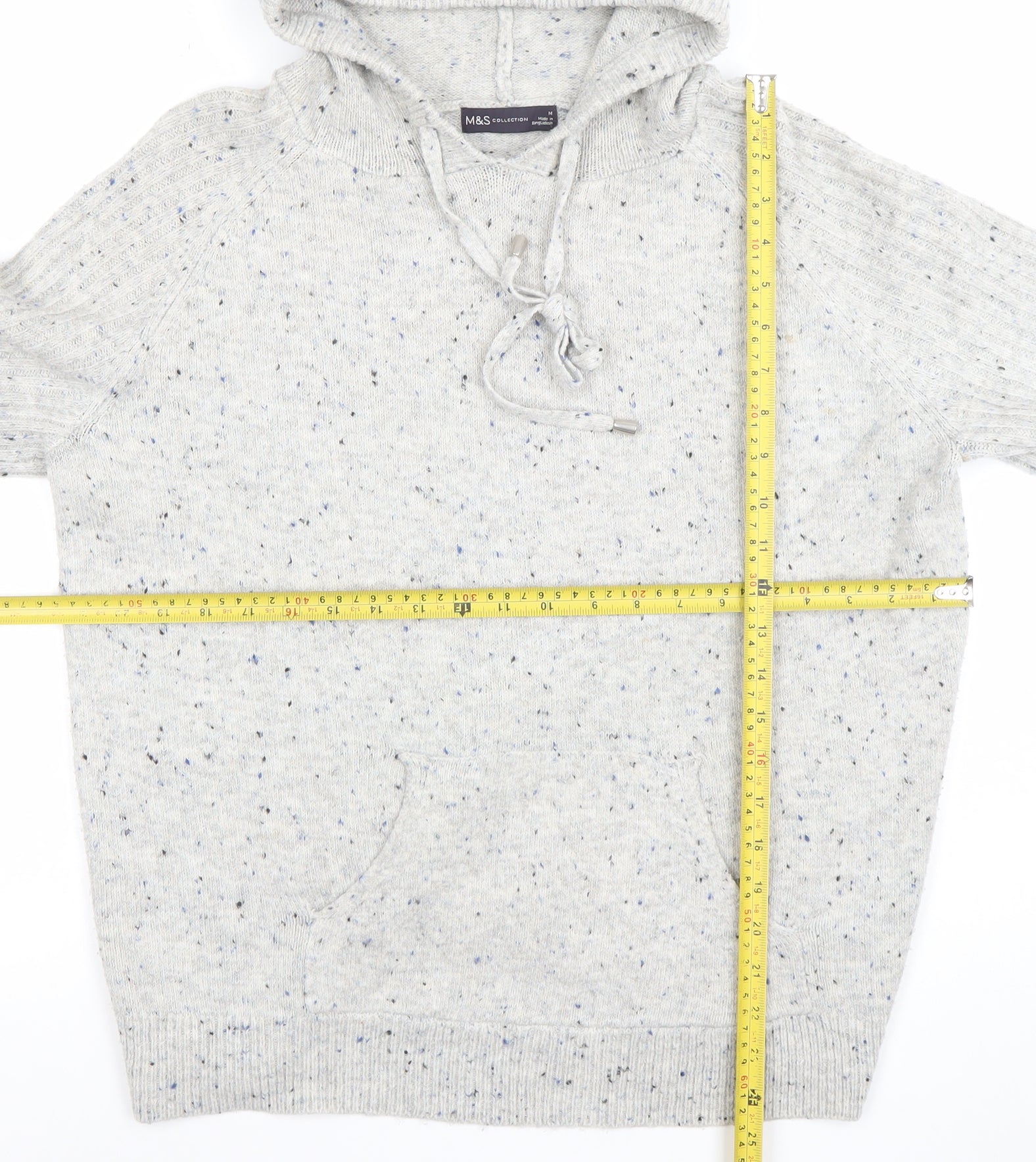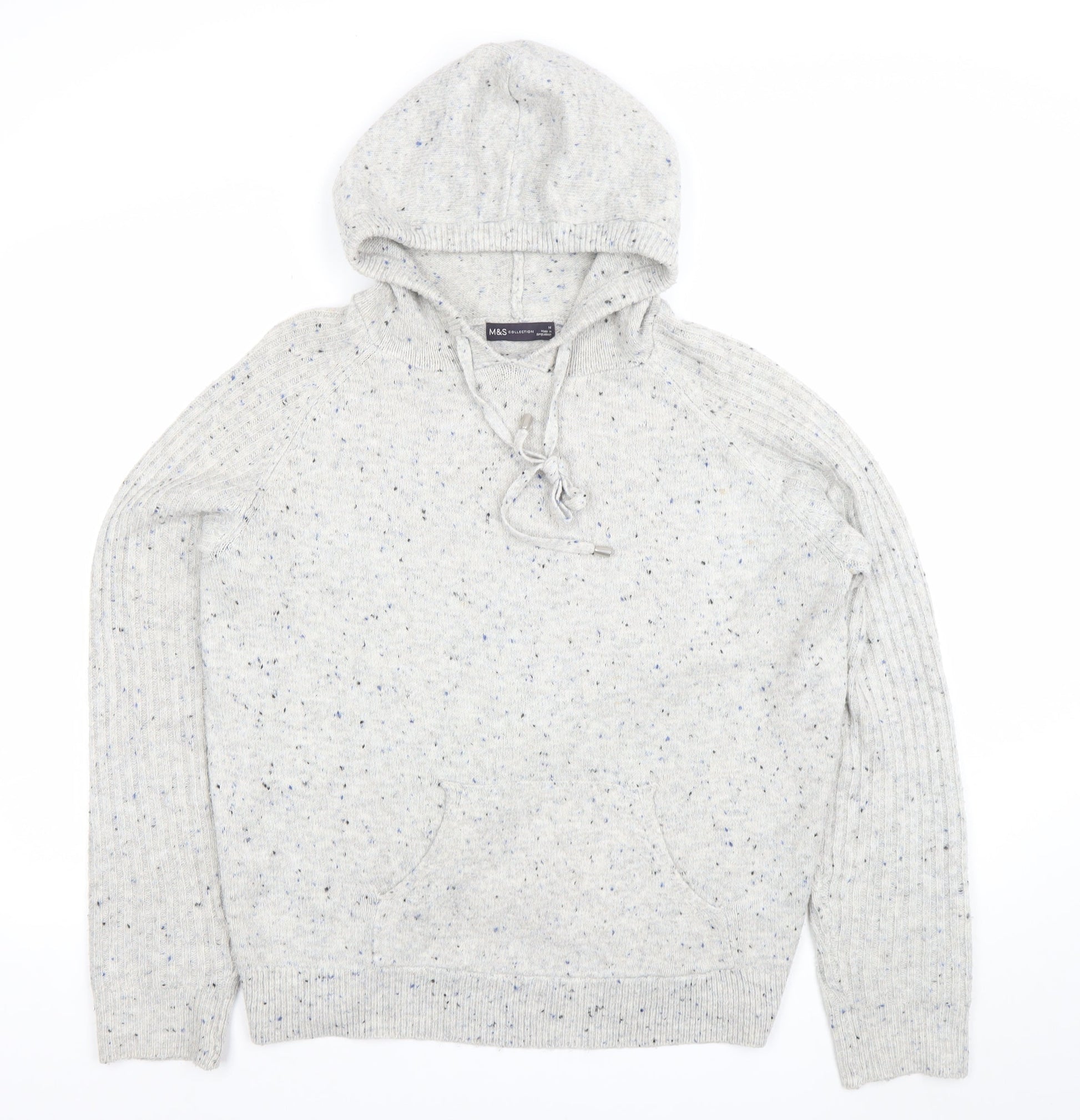 Marks and Spencer Men’s Grey Wool Blend Hooded Pullover Jumper Size M