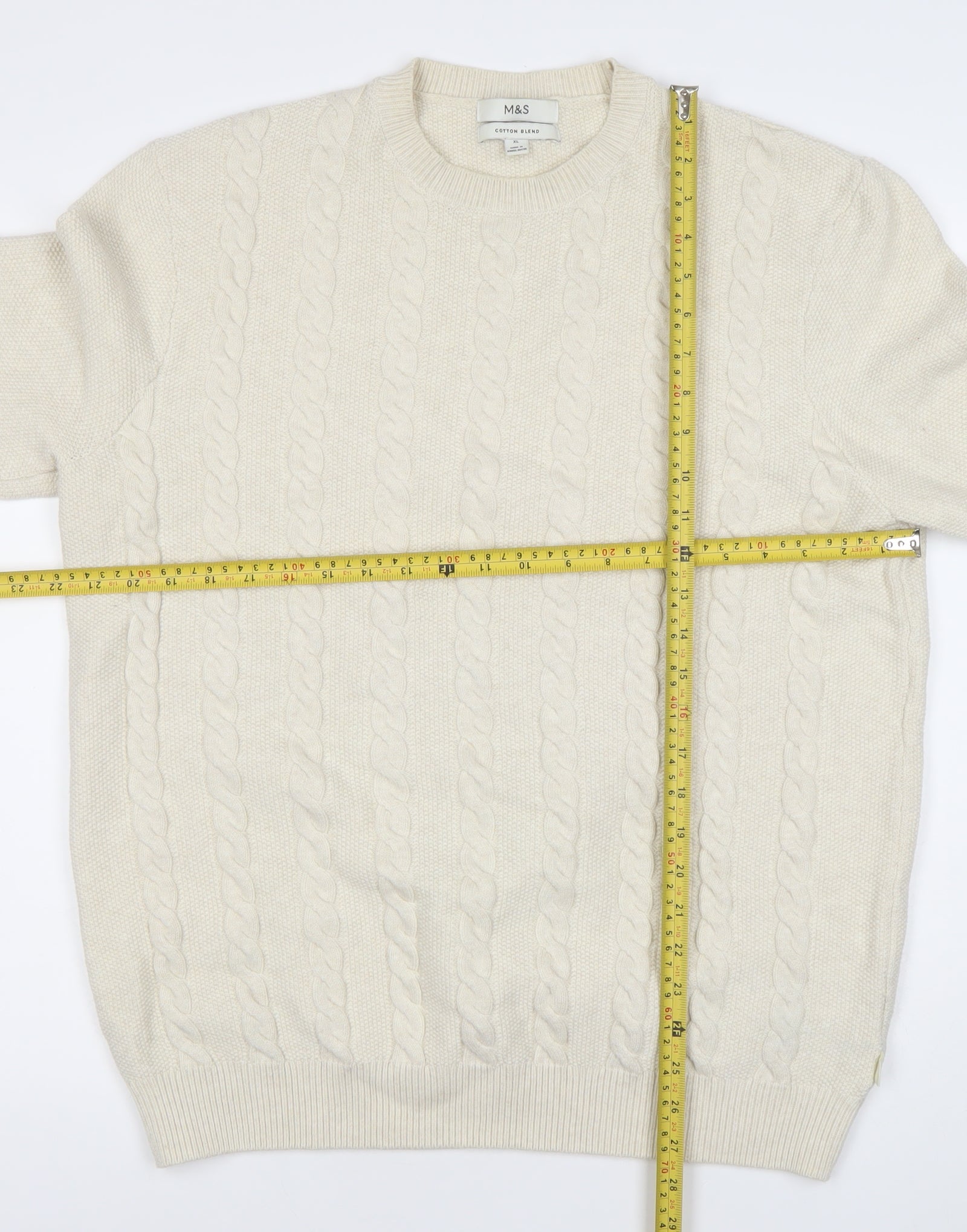 Marks and Spencer Men’s Ivory XL Cable-Knit Cotton Blend Jumper
