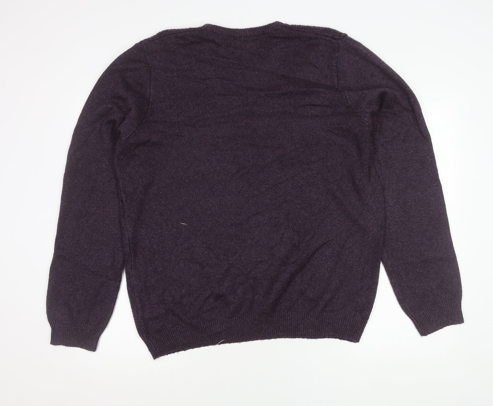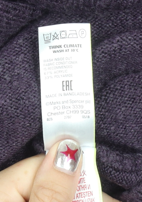Marks and Spencer Men’s Purple L Cable Knit Jumper Crew Neck