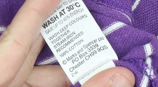 Marks and Spencer Men’s Purple Striped Polo Shirt Size M Cotton