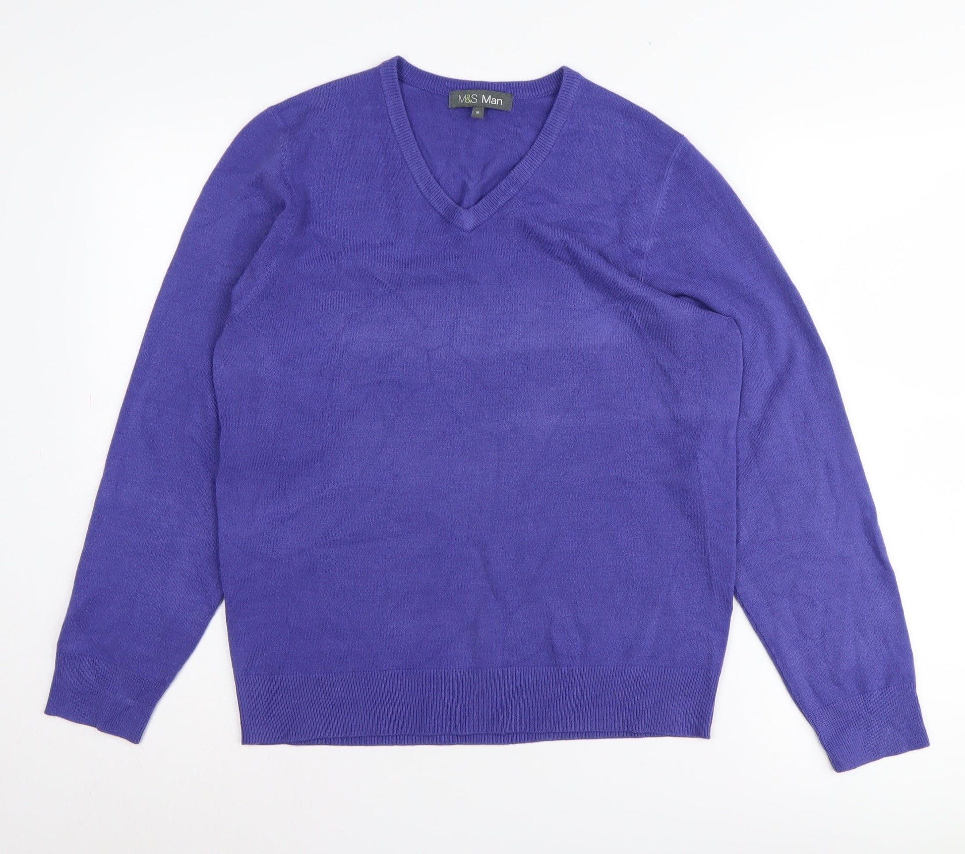 Marks and Spencer Men’s Purple V-Neck Pullover – Size M