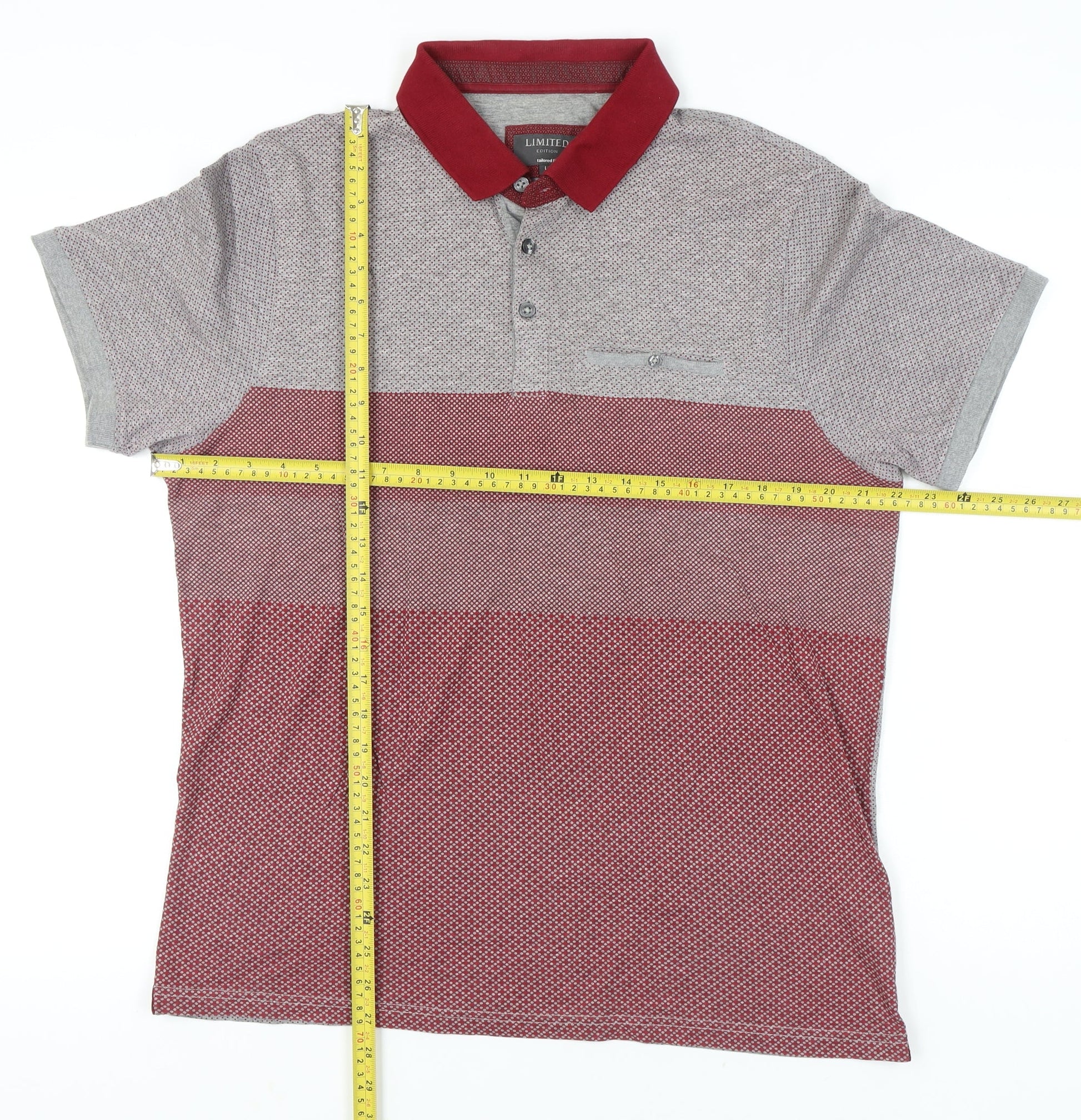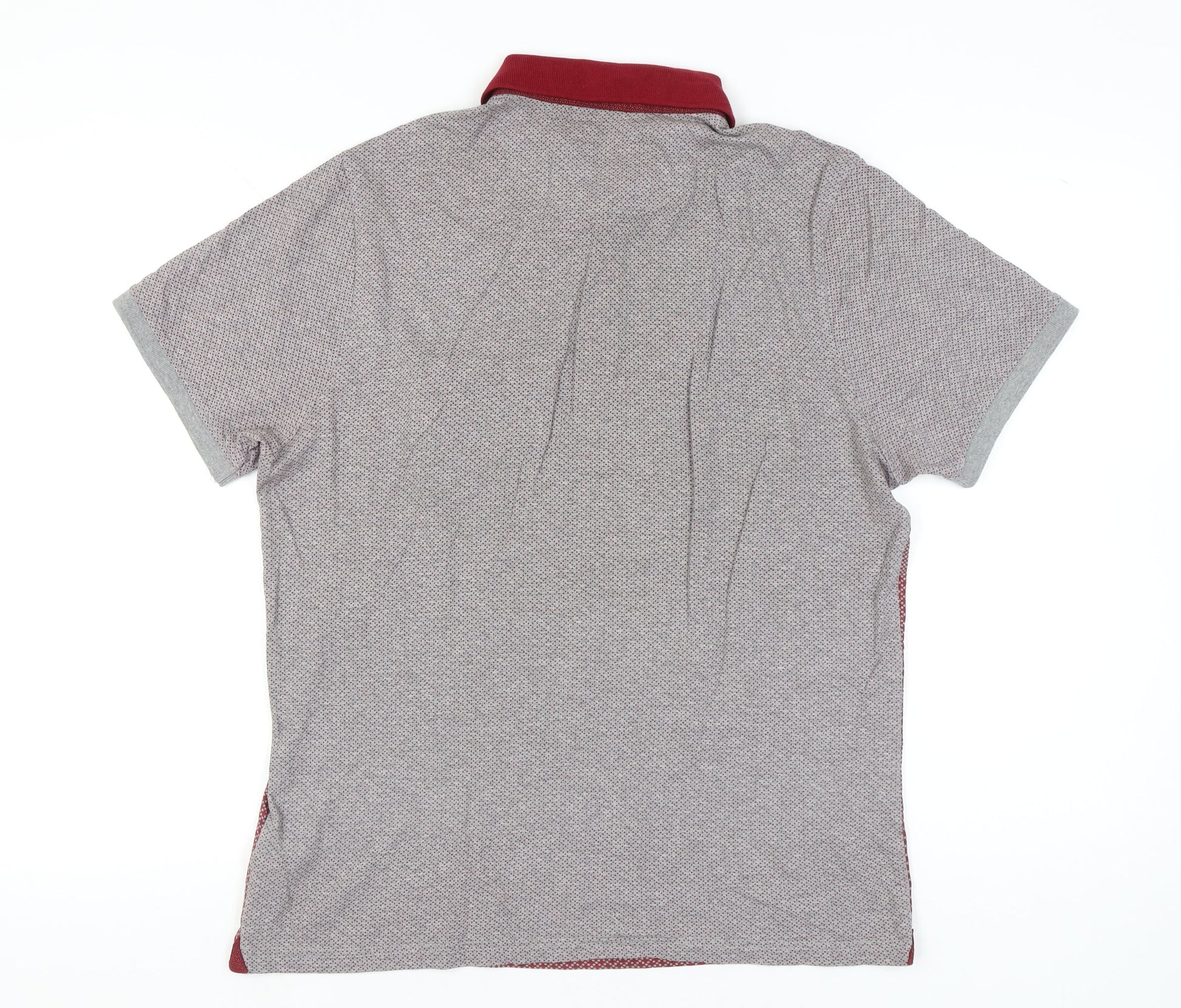 Marks and Spencer Men’s Red Grey Colourblock Polo Shirt L Regular Fit