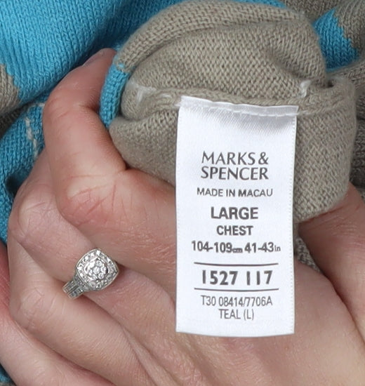 Marks and Spencer Men's Beige Argyle Pullover Jumper L
