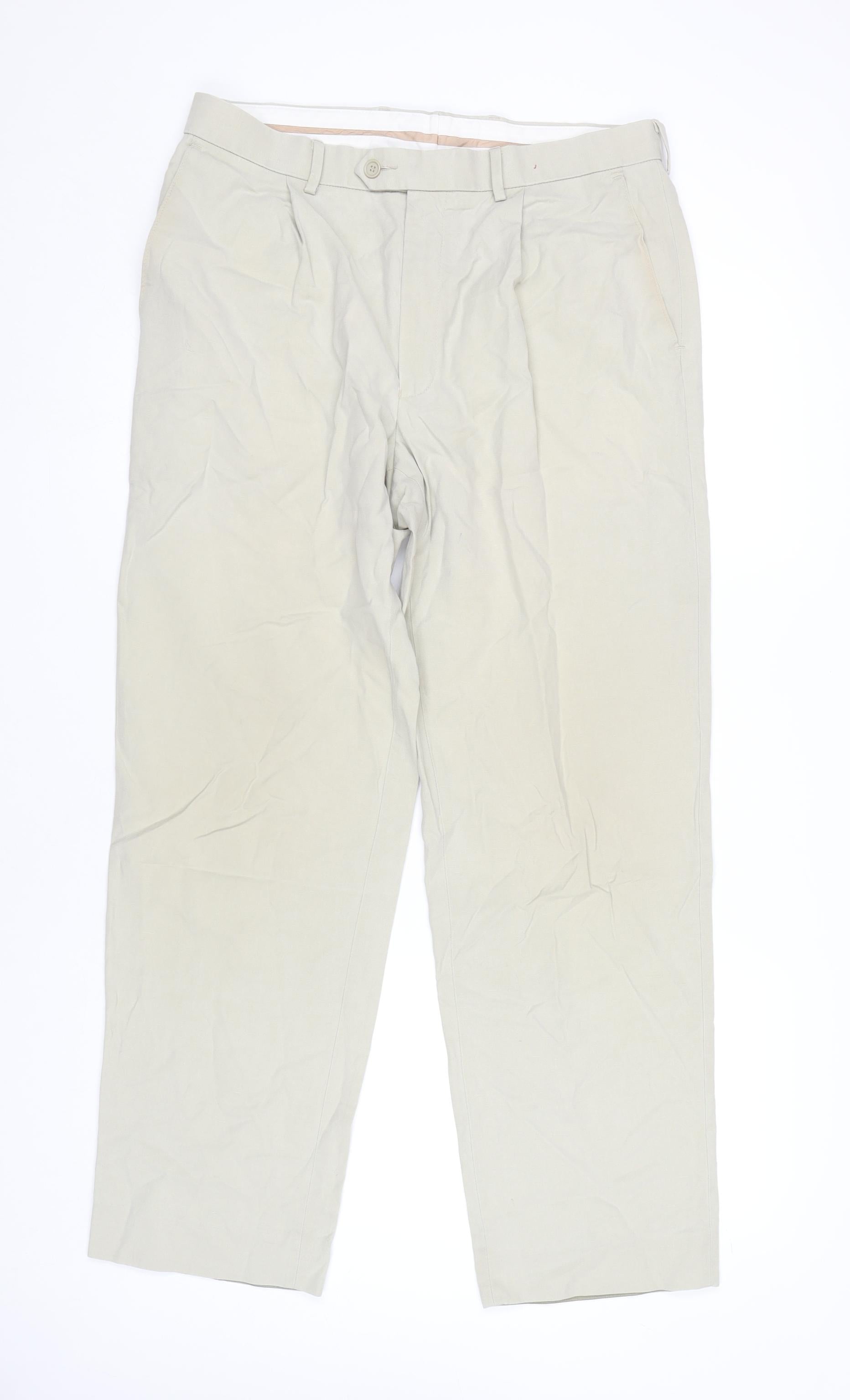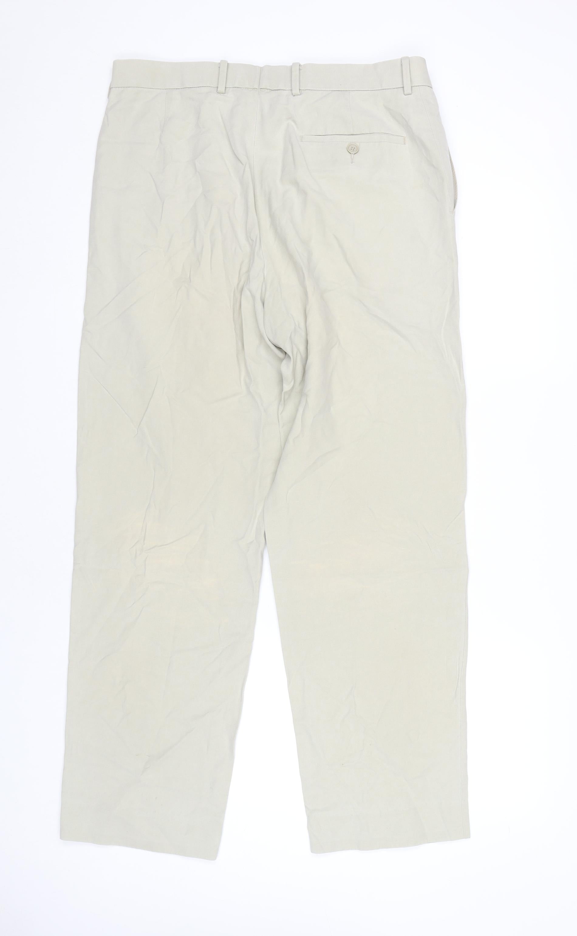 Marks and Spencer Men's Beige Chino Trousers 34W 31L Pleated Linen Blend