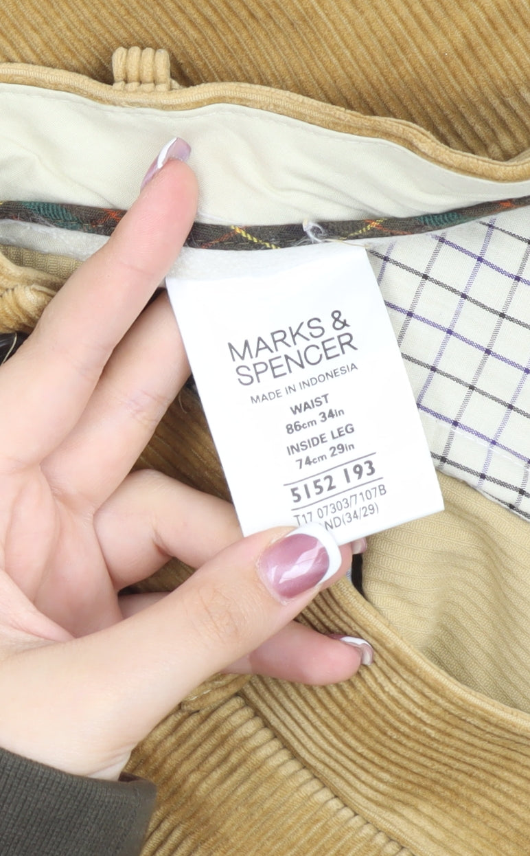 Marks and Spencer Men's Beige Corduroy Trousers 34R