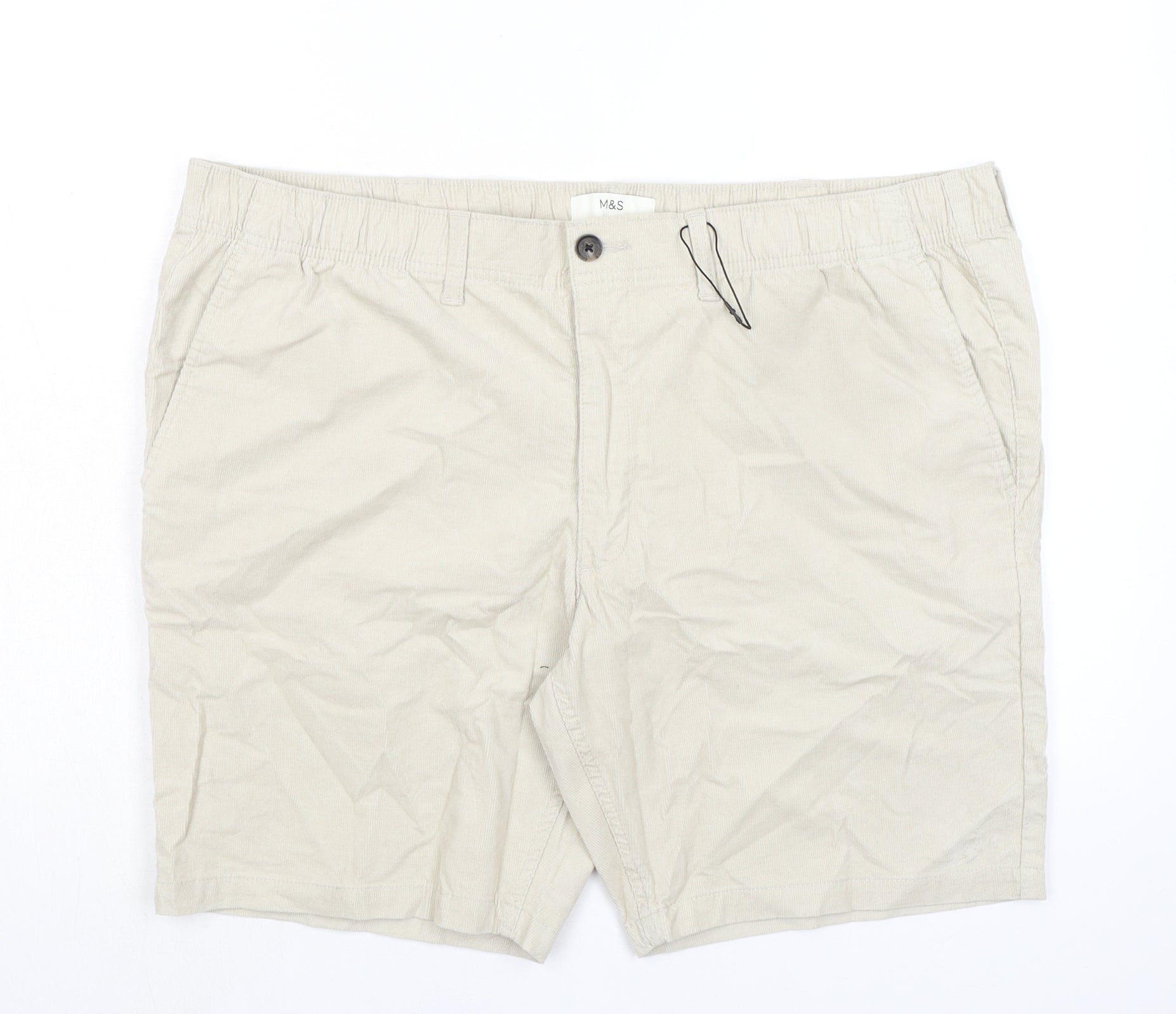 Marks and Spencer Mens Beige Cotton Chino Shorts Size 2XL L9 in Regular Zip