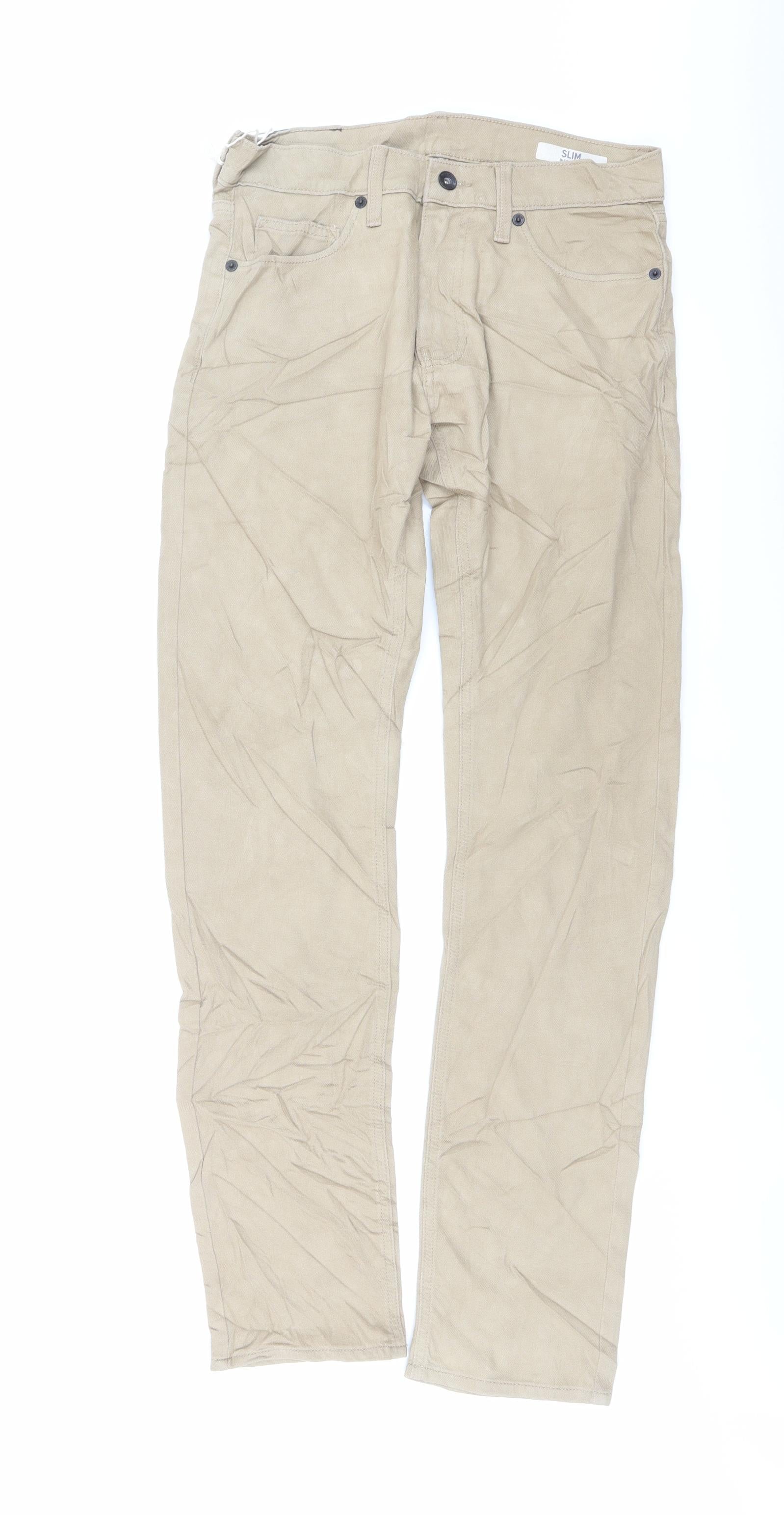 Marks and Spencer Mens Beige Cotton Straight Jeans Size 30 in L33 in Slim Button