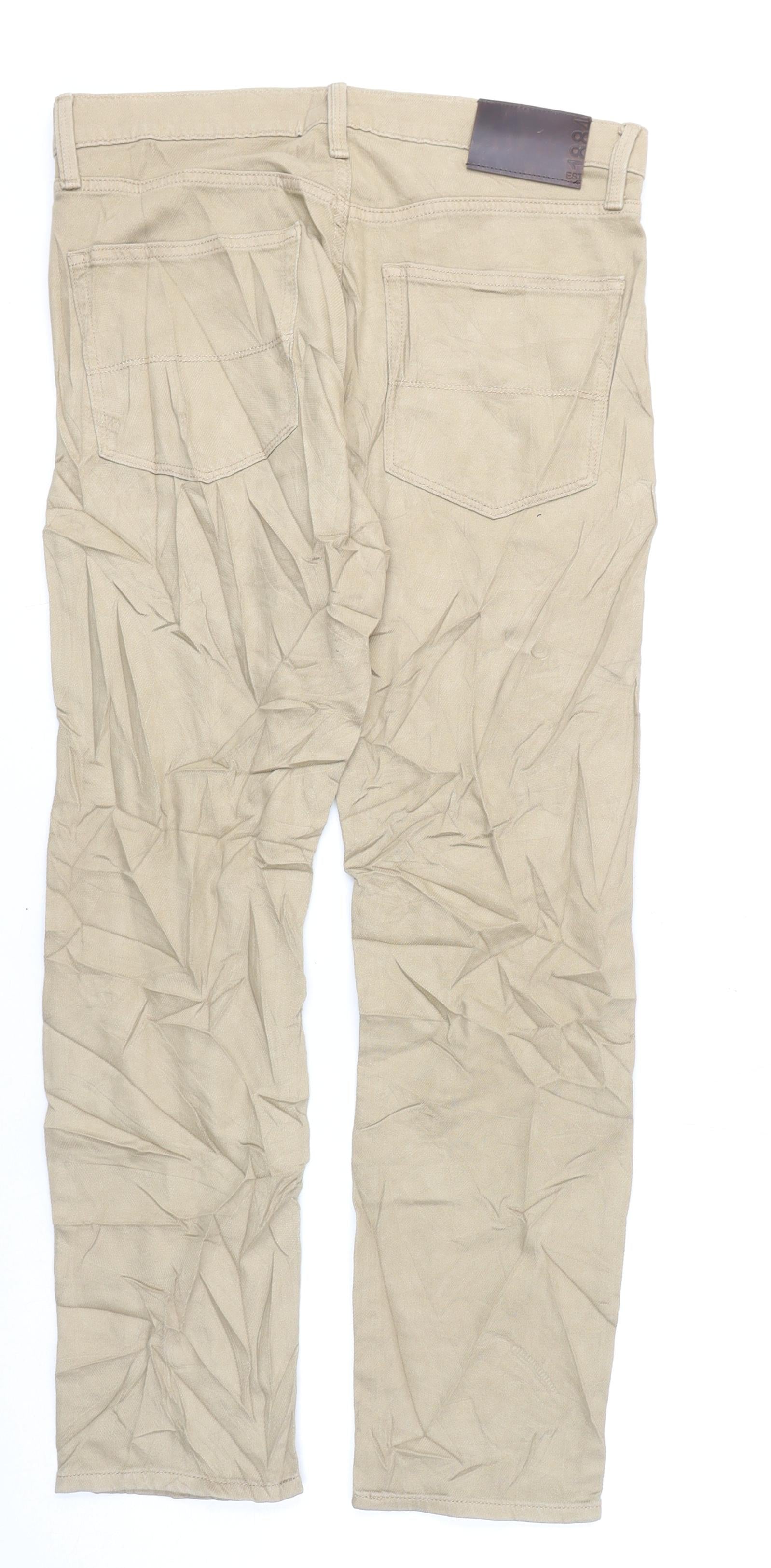 Marks and Spencer Mens Beige Cotton Straight Jeans Size 32 in L29 in Slim Zip