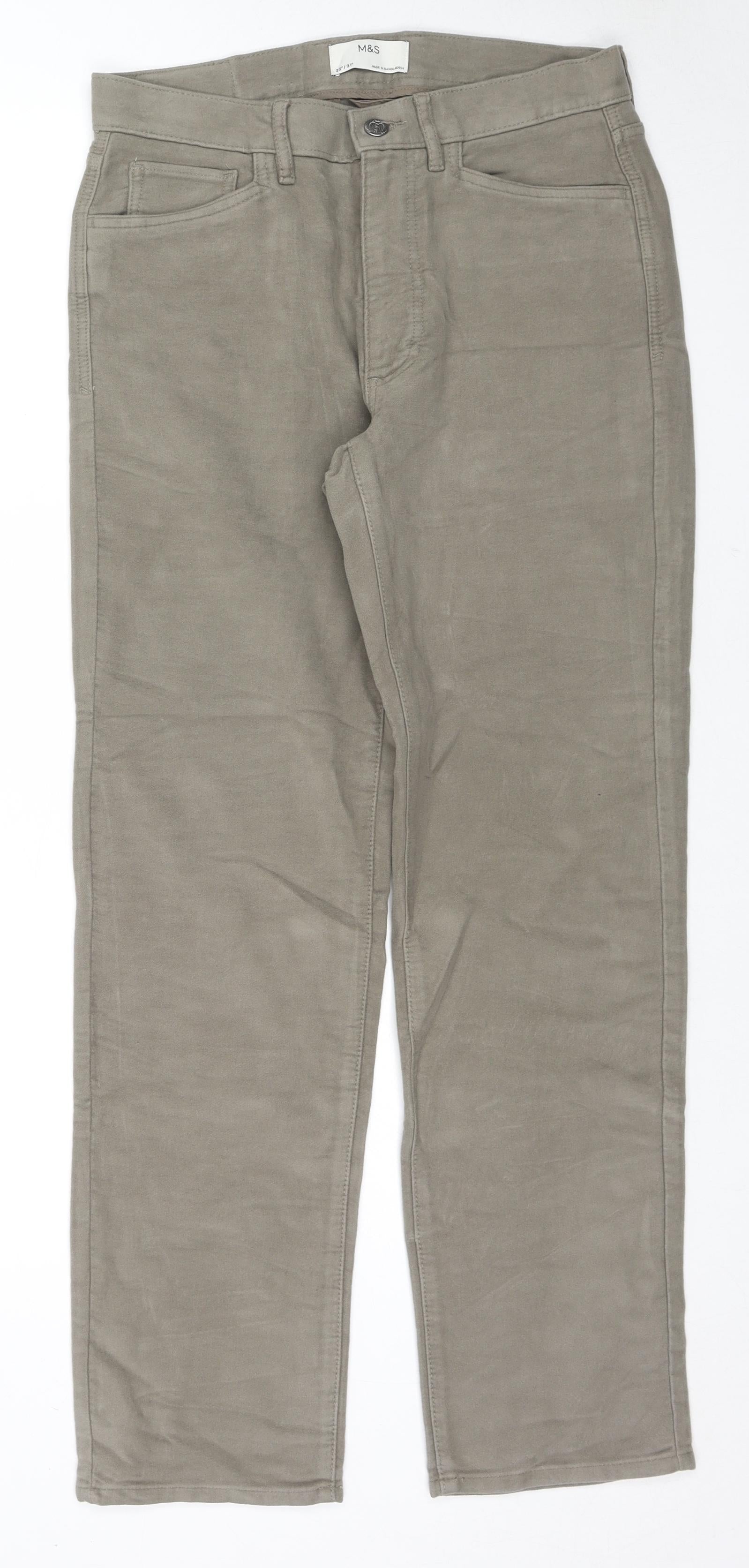 Marks and Spencer Mens Beige Cotton Trousers Size 30 in L31 in Regular Zip