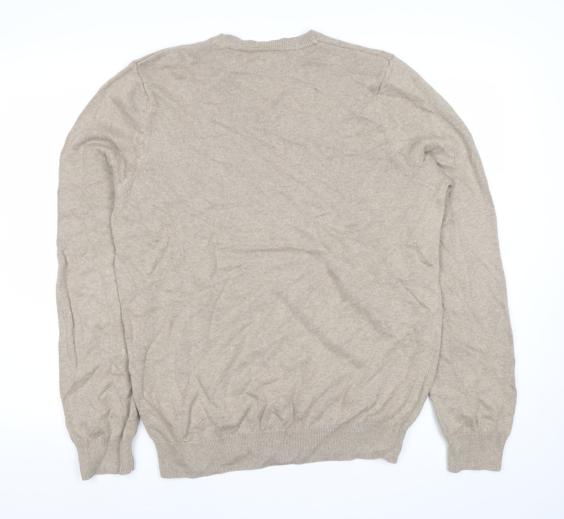 Marks and Spencer Mens Beige Cotton V-Neck Jumper L