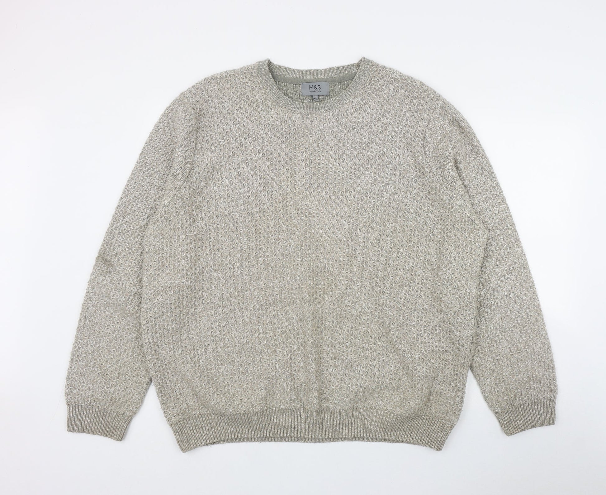 Marks and Spencer Mens Beige Round Neck Acrylic Pullover Jumper Size 2XL