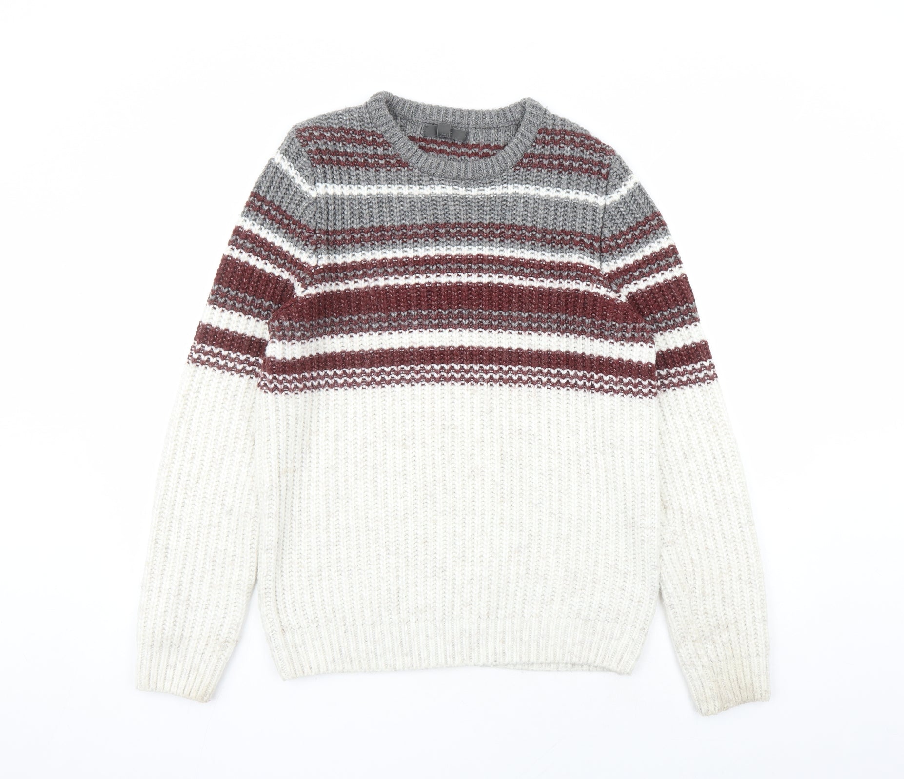 Marks and Spencer Mens Beige Round Neck Striped Acrylic Pullover Jumper Size S Long Sleeve