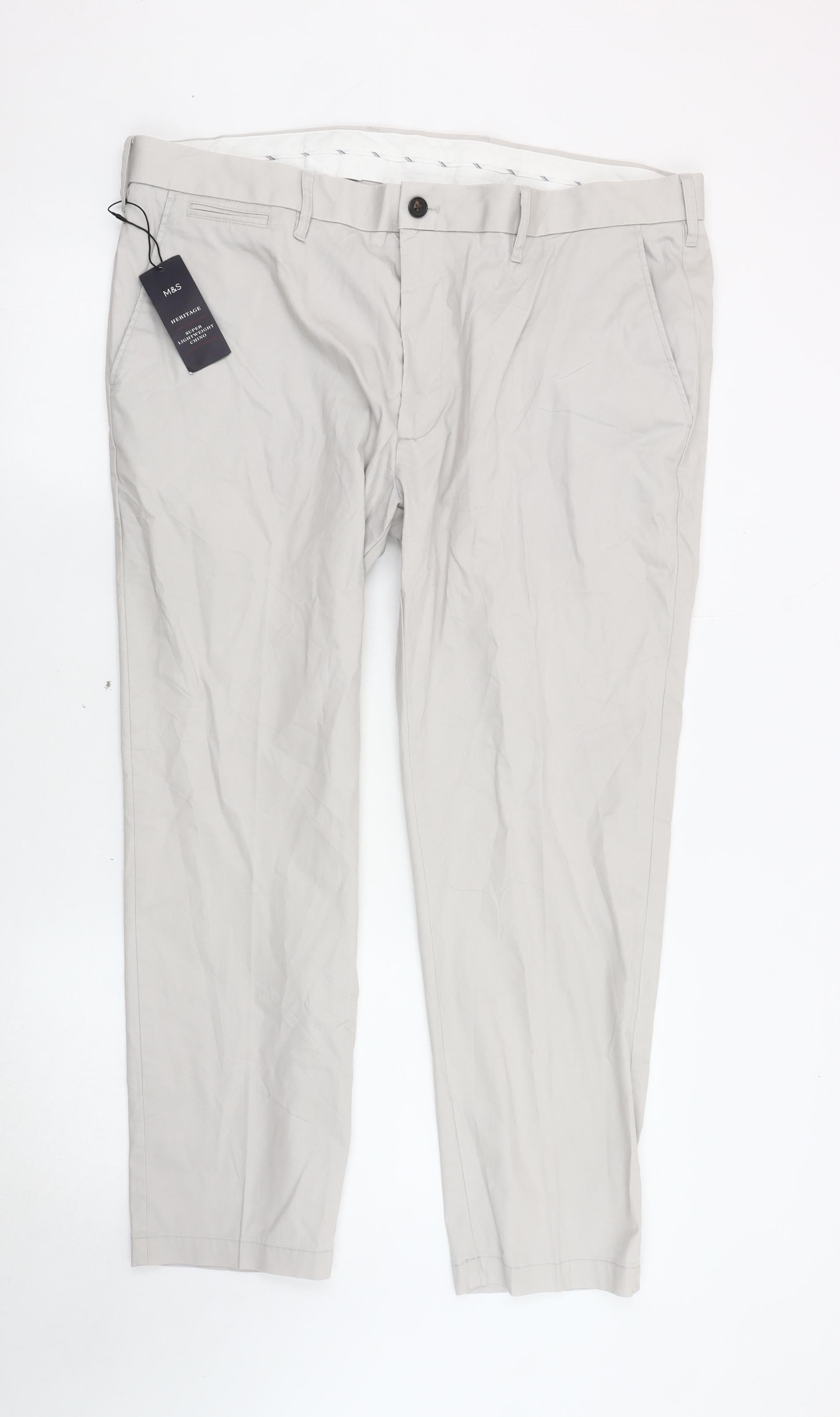 Marks and Spencer Men's Beige Slim Chino Trousers