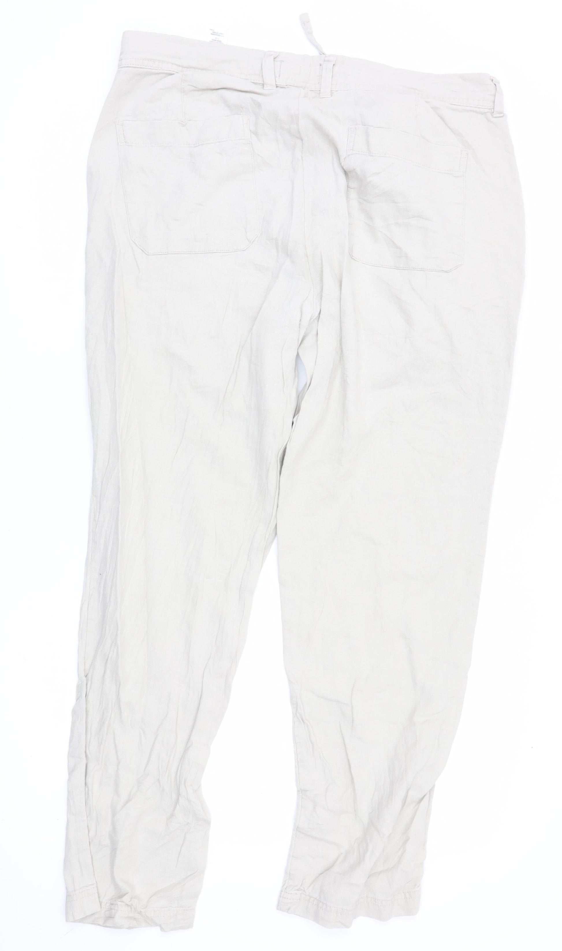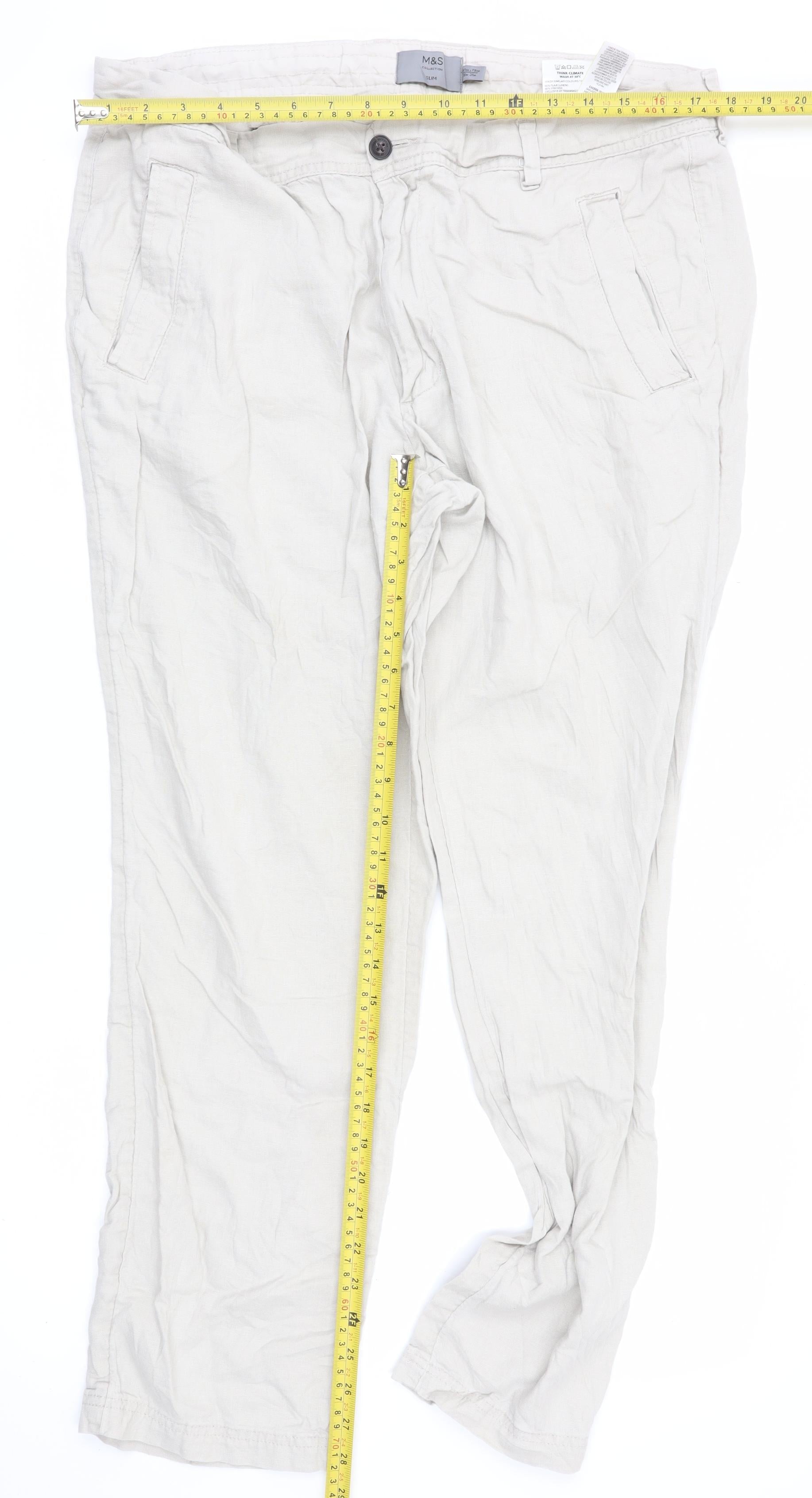 Marks and Spencer Men's Beige Slim Fit Casual Linen Blend Trousers 38W 31L