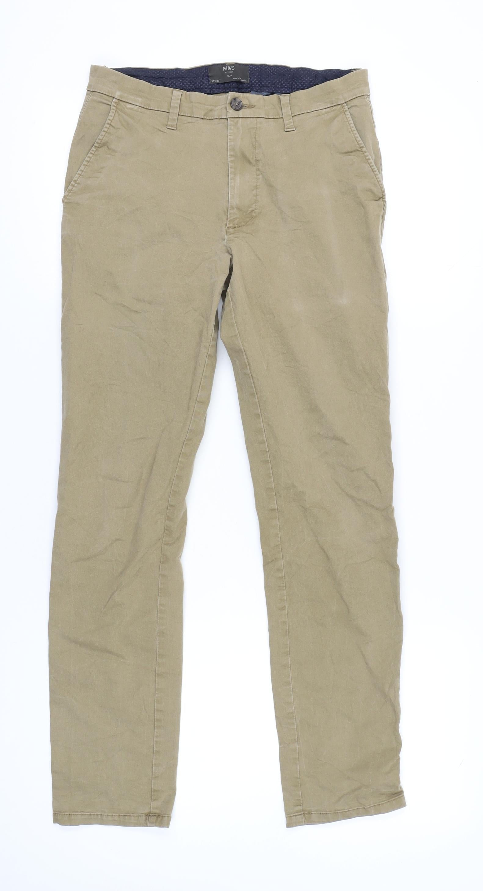Marks and Spencer Mens Beige Slim Fit Chino Trousers 30W 33L