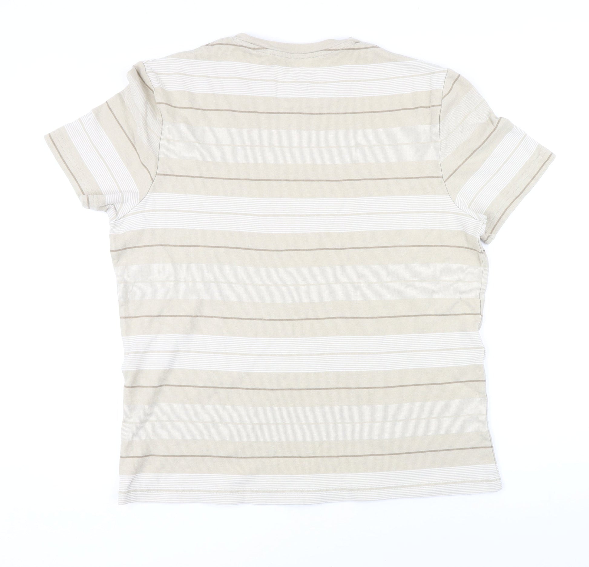 Marks and Spencer Mens Beige Striped Cotton T-Shirt Size L Round Neck