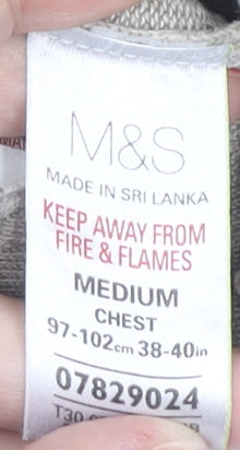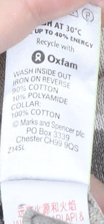 Marks and Spencer Men's Beige Striped Long Sleeve Polo M