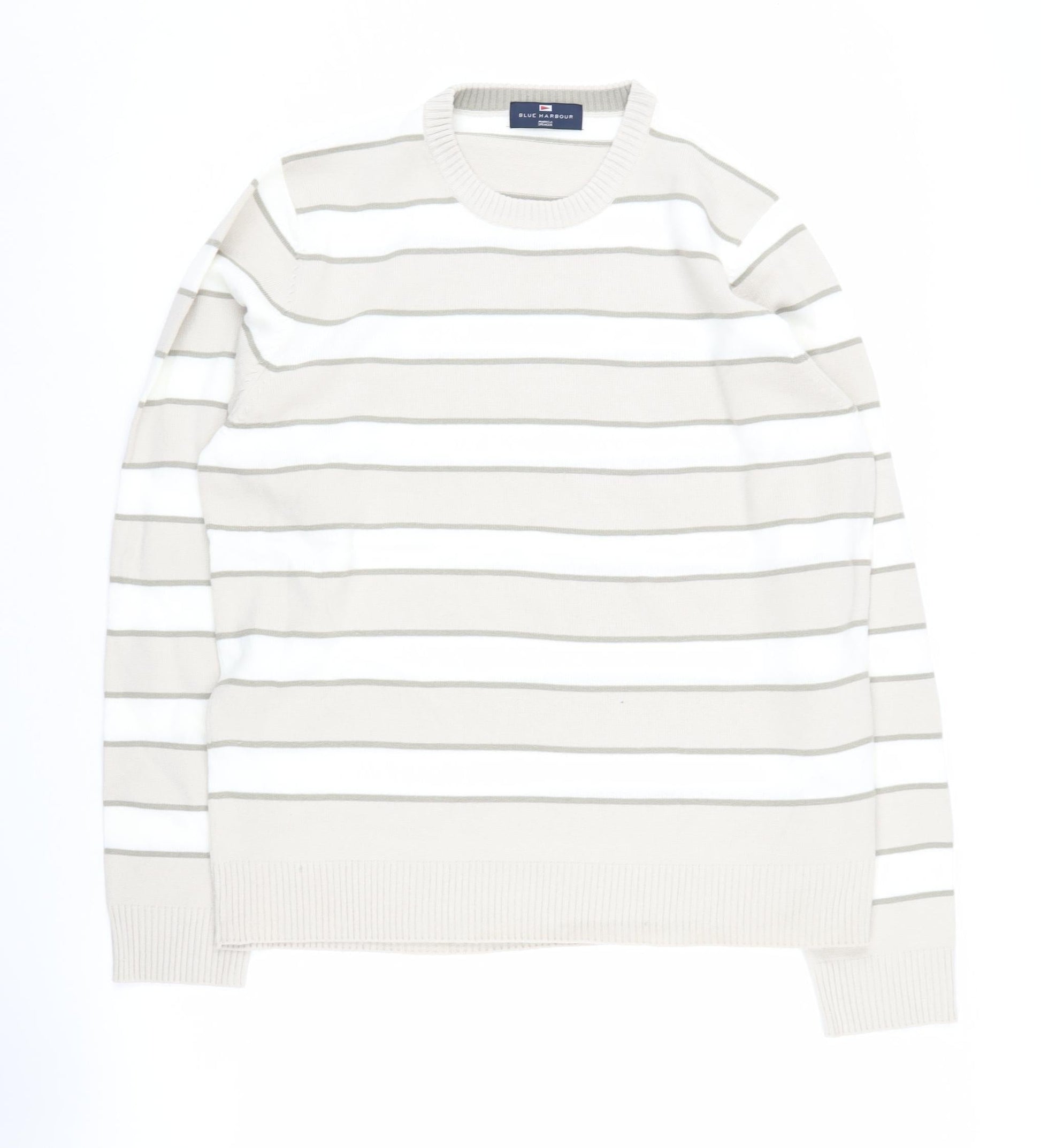 Marks and Spencer Men's Beige Striped Pullover Jumper M