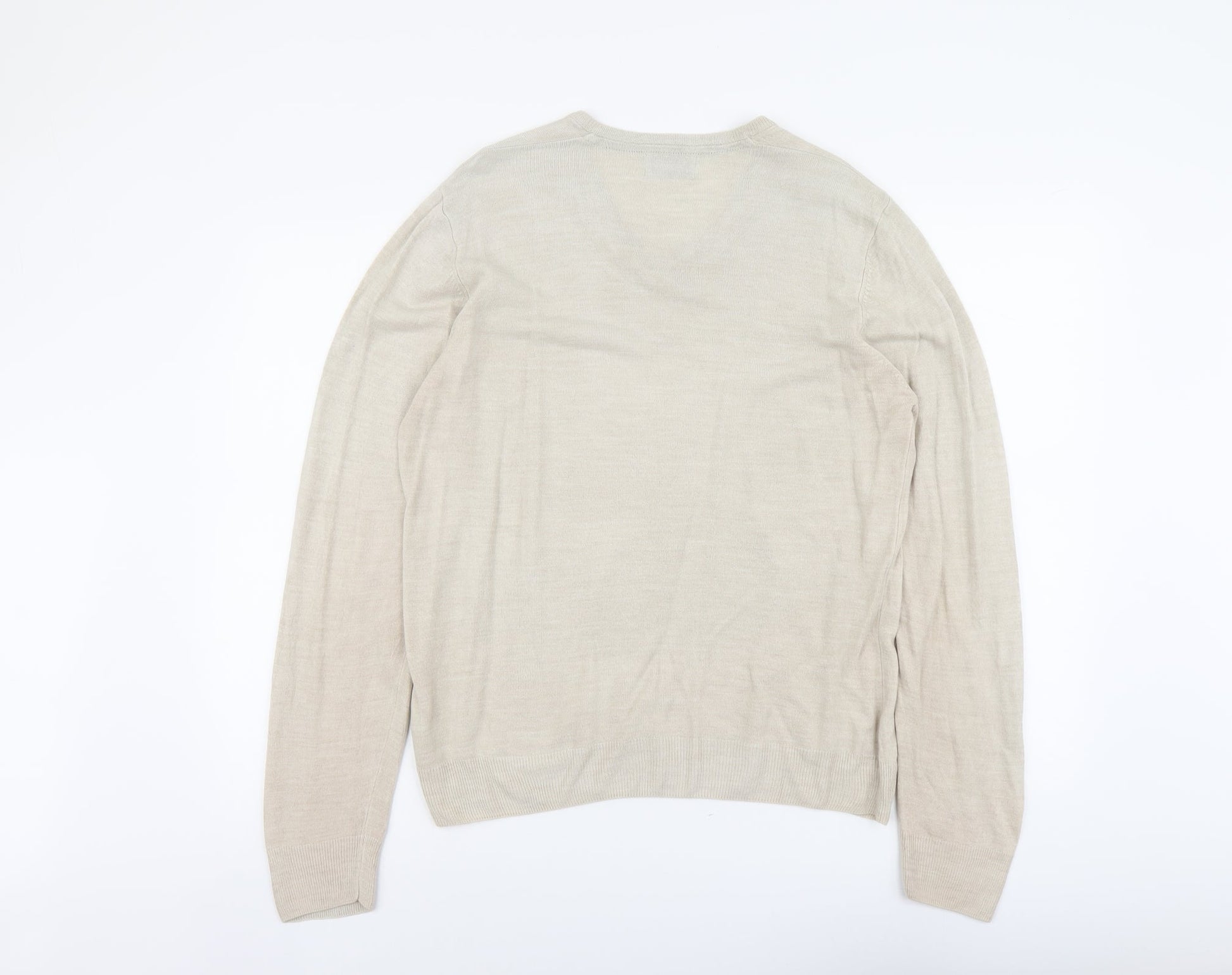 Marks and Spencer Mens Beige V-Neck Acrylic Pullover Jumper Size M Long Sleeve