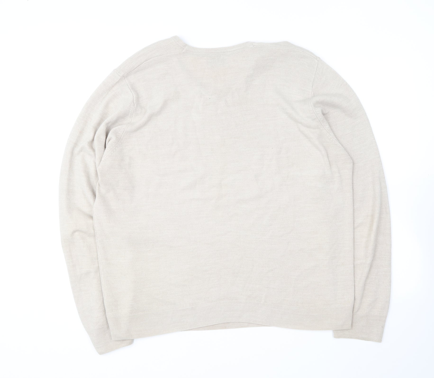 Marks and Spencer Mens Beige V-Neck Acrylic Pullover Jumper Size XL