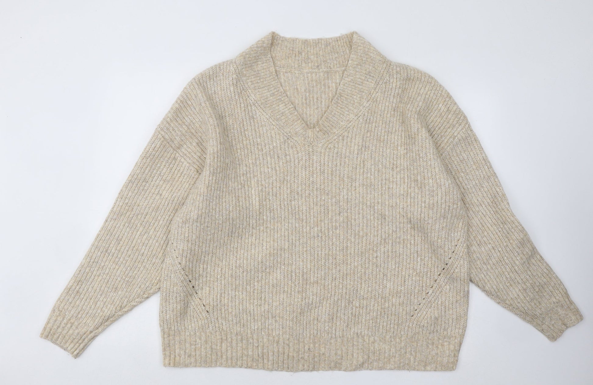 Marks and Spencer Mens Beige V-Neck Acrylic Pullover Jumper Size XL