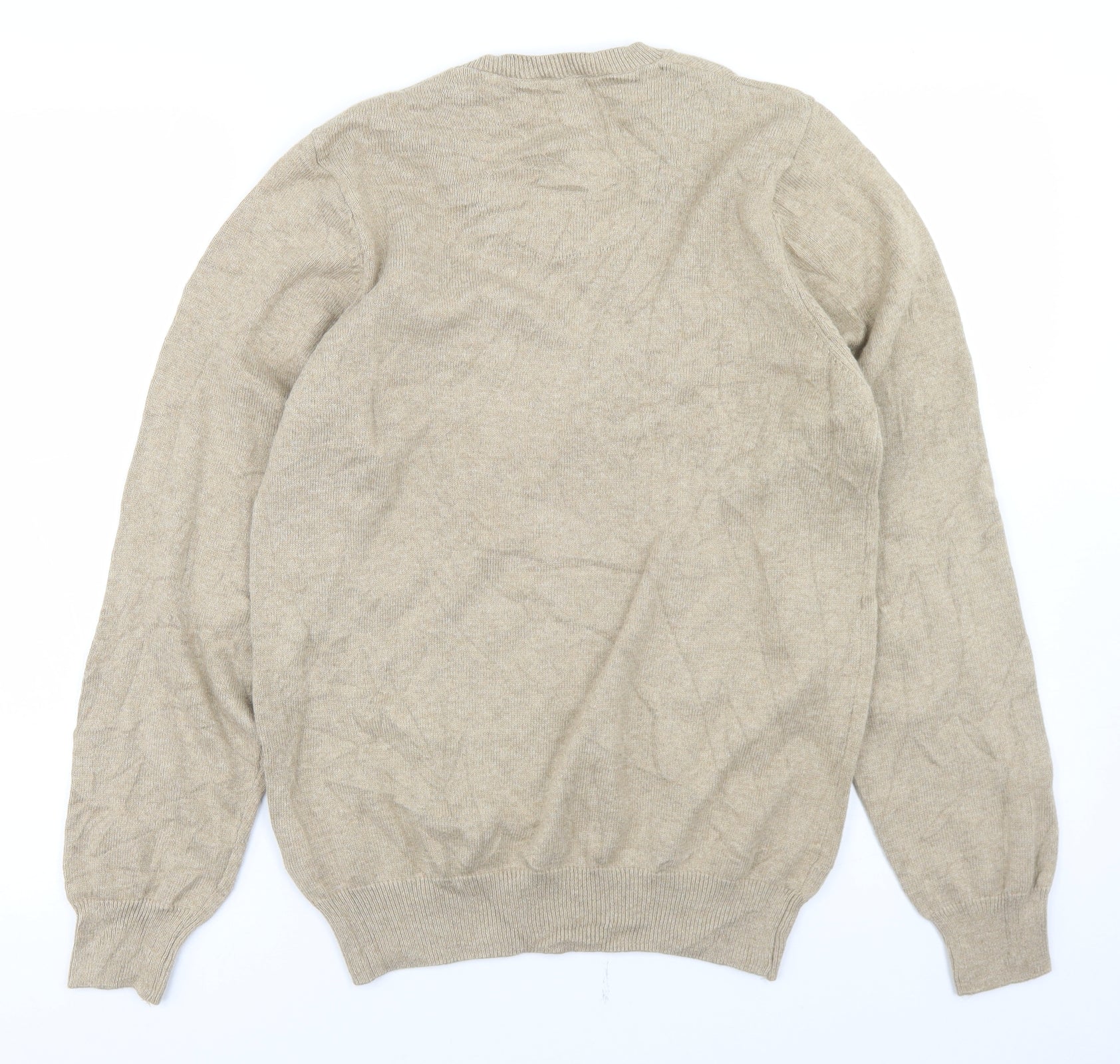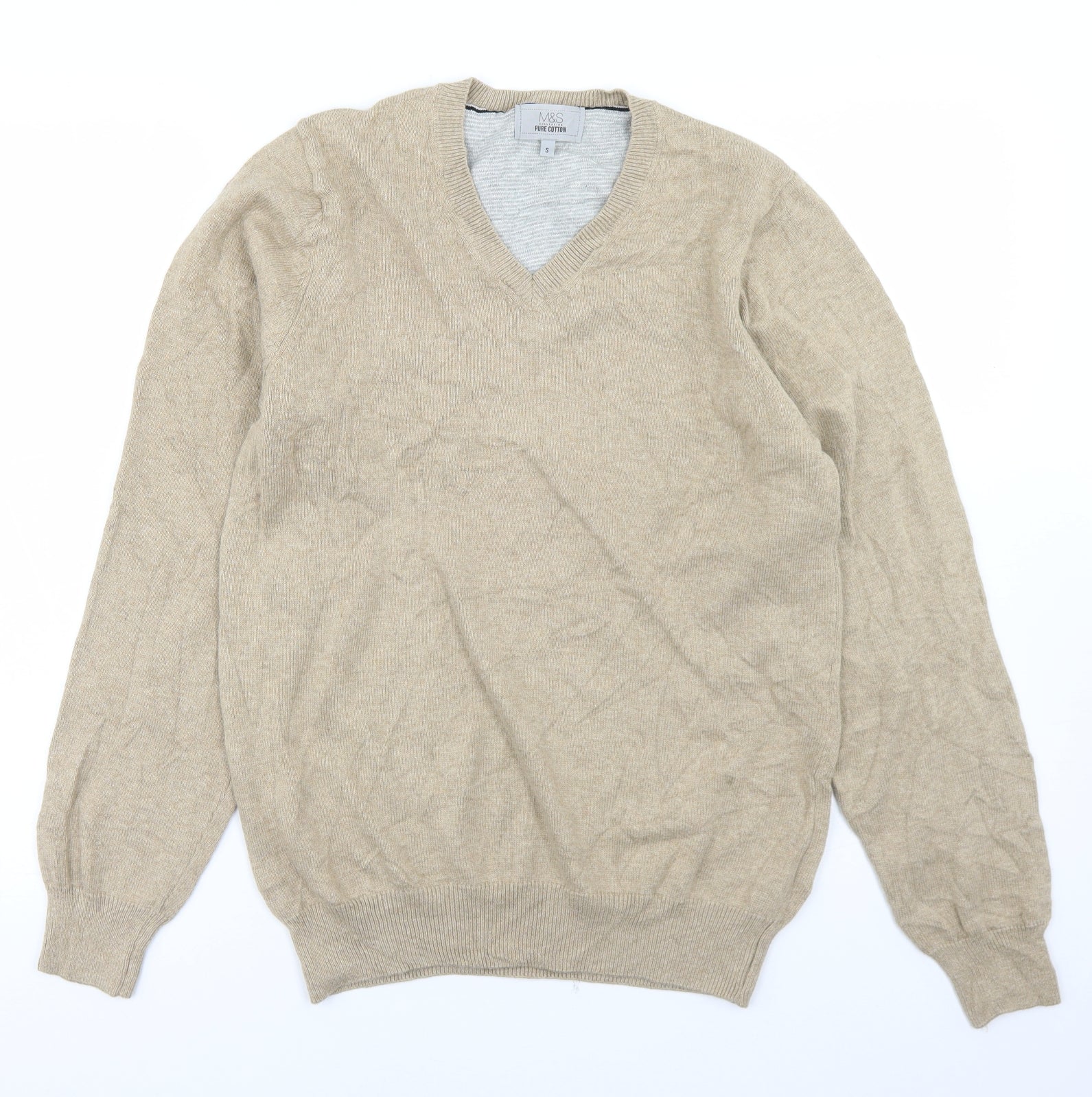 Marks and Spencer Mens Beige V-Neck Cotton Pullover Jumper Size S