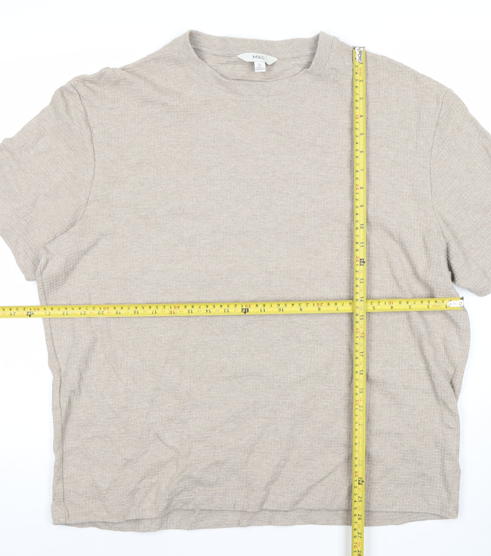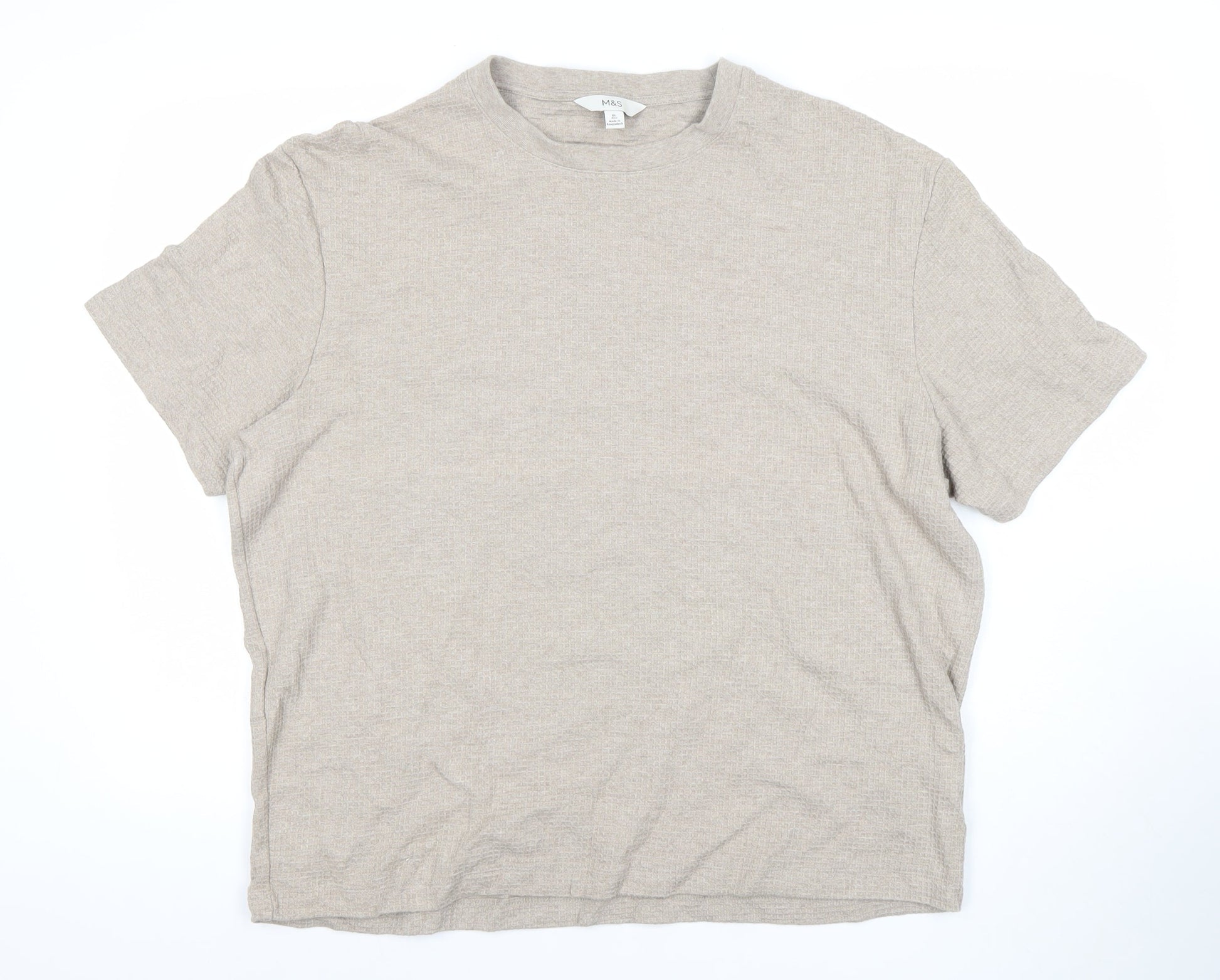 Marks and Spencer Men's Beige XL Crew Neck Cotton T-Shirt