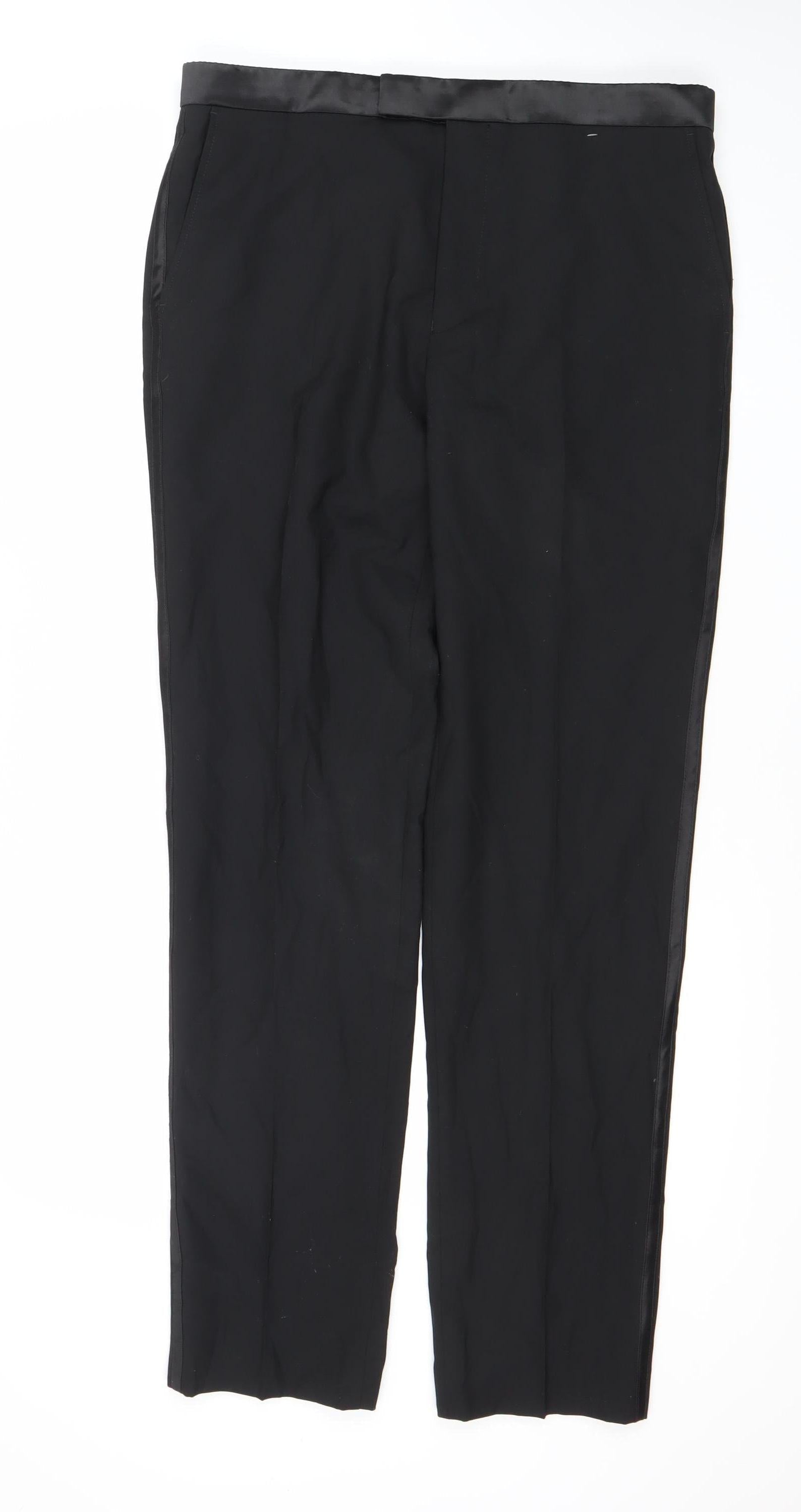 Marks and Spencer Mens Black 34W 33L Tailored Wool Blend Dress Pants