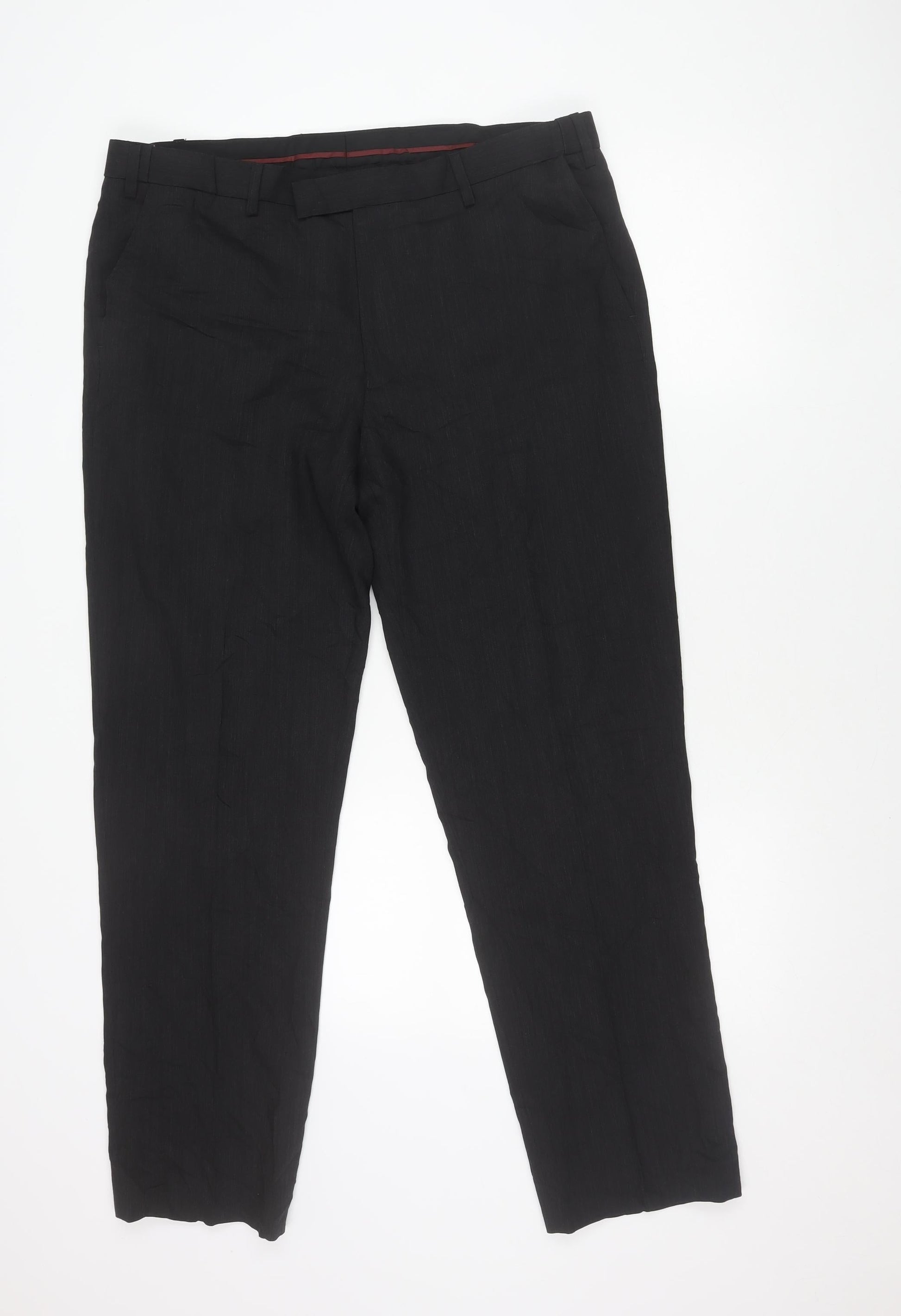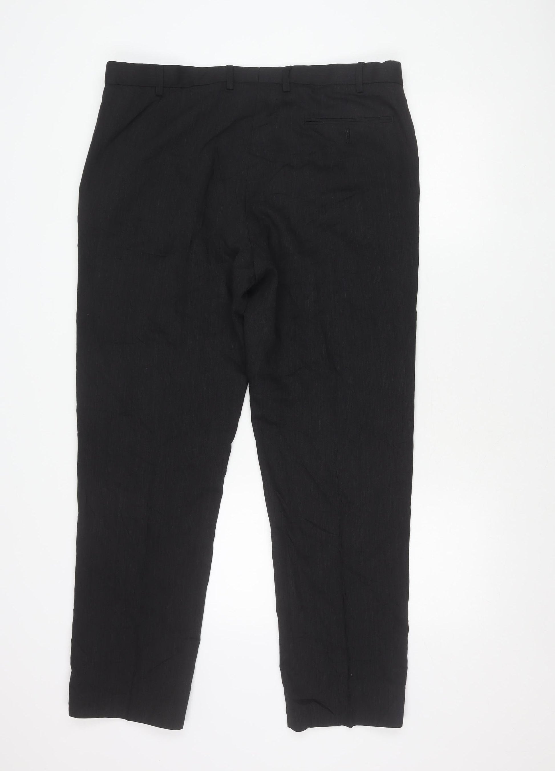 Marks and Spencer Men's Black 38in Wool Blend Regular Fit Dress Trousers