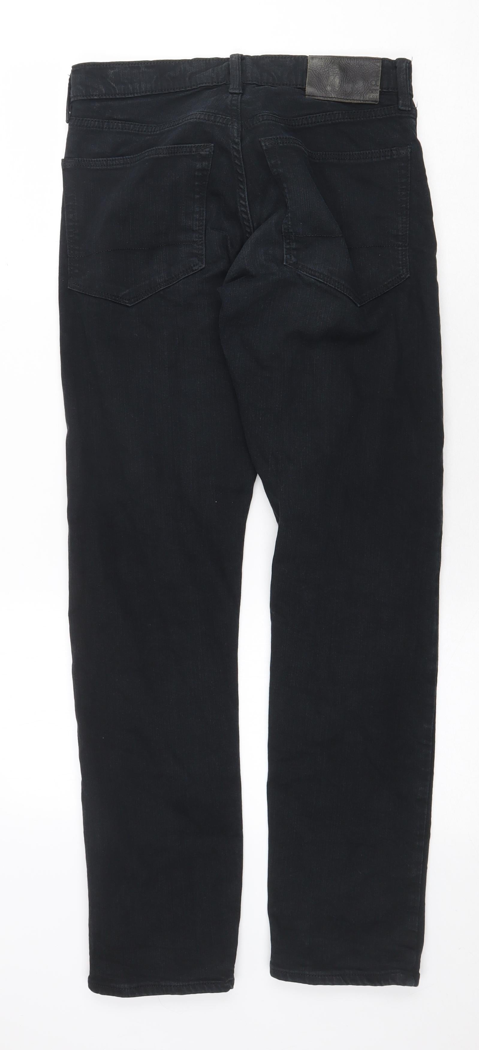 Marks and Spencer Mens Black Cotton Straight Jeans Size 30 in Regular Zip