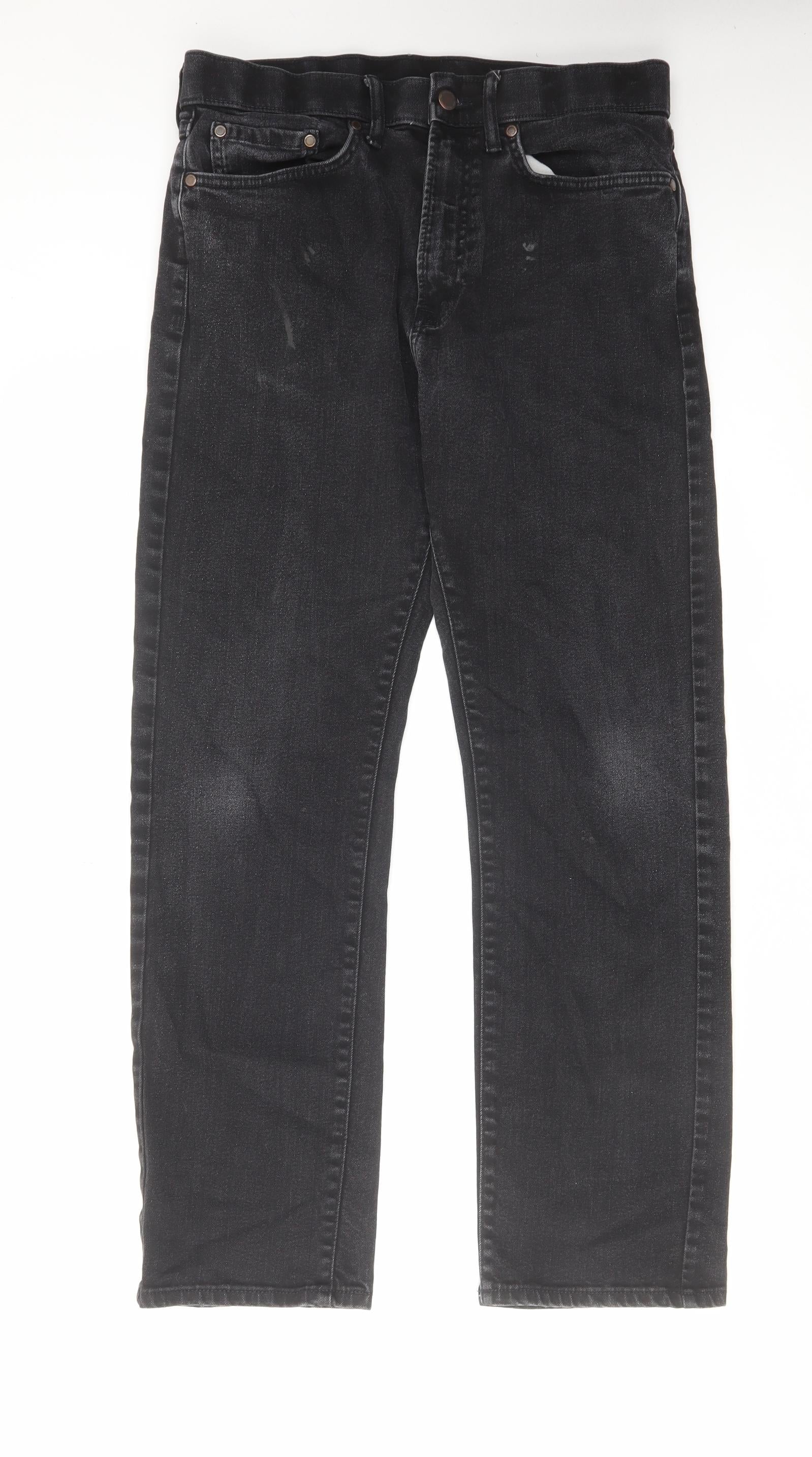 Marks and Spencer Mens Black Cotton Straight Jeans Size 32 in L31 in Regular Zip