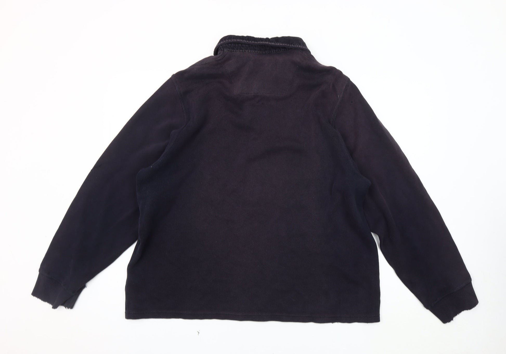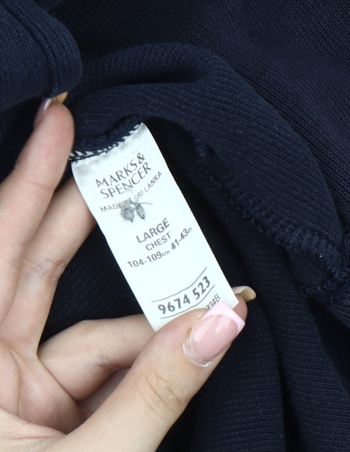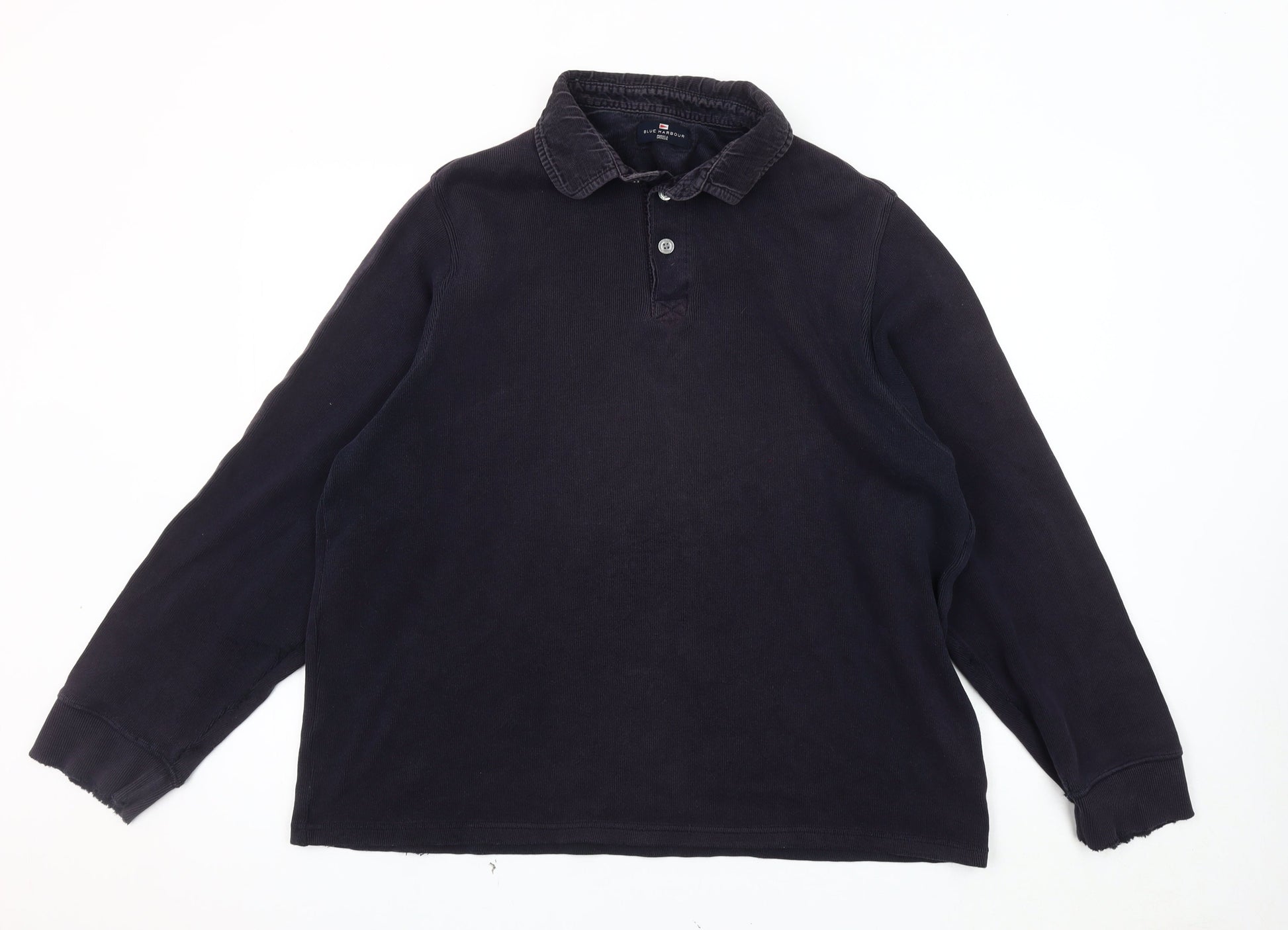 Marks and Spencer Men's Black Long Sleeve Polo - Large