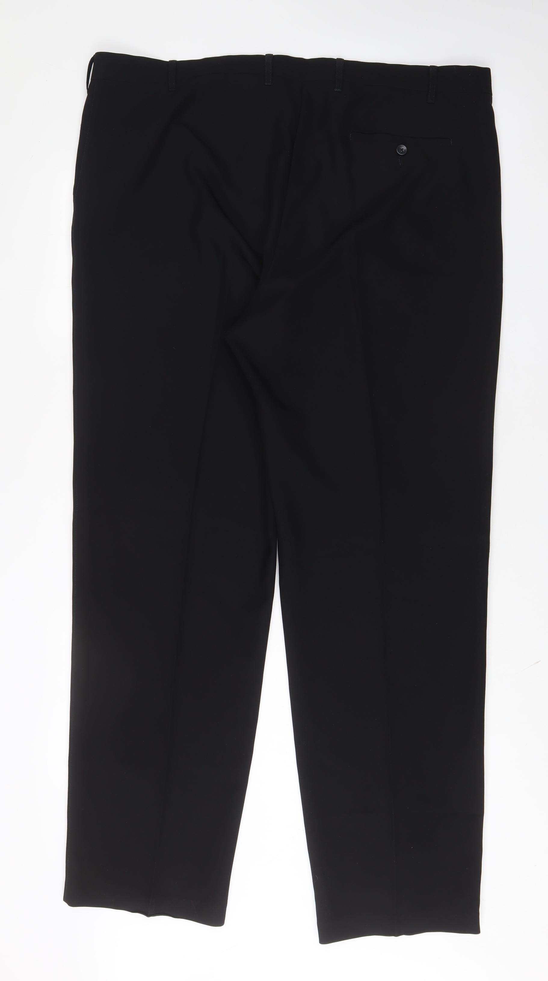 Marks and Spencer Mens Black Polyester Trousers Size 44 in L35 in Regular Hook & Eye - Long Leg, Pockets