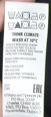 - Material Breakdown: 73% Polyester 19% Viscose 8% Elastane