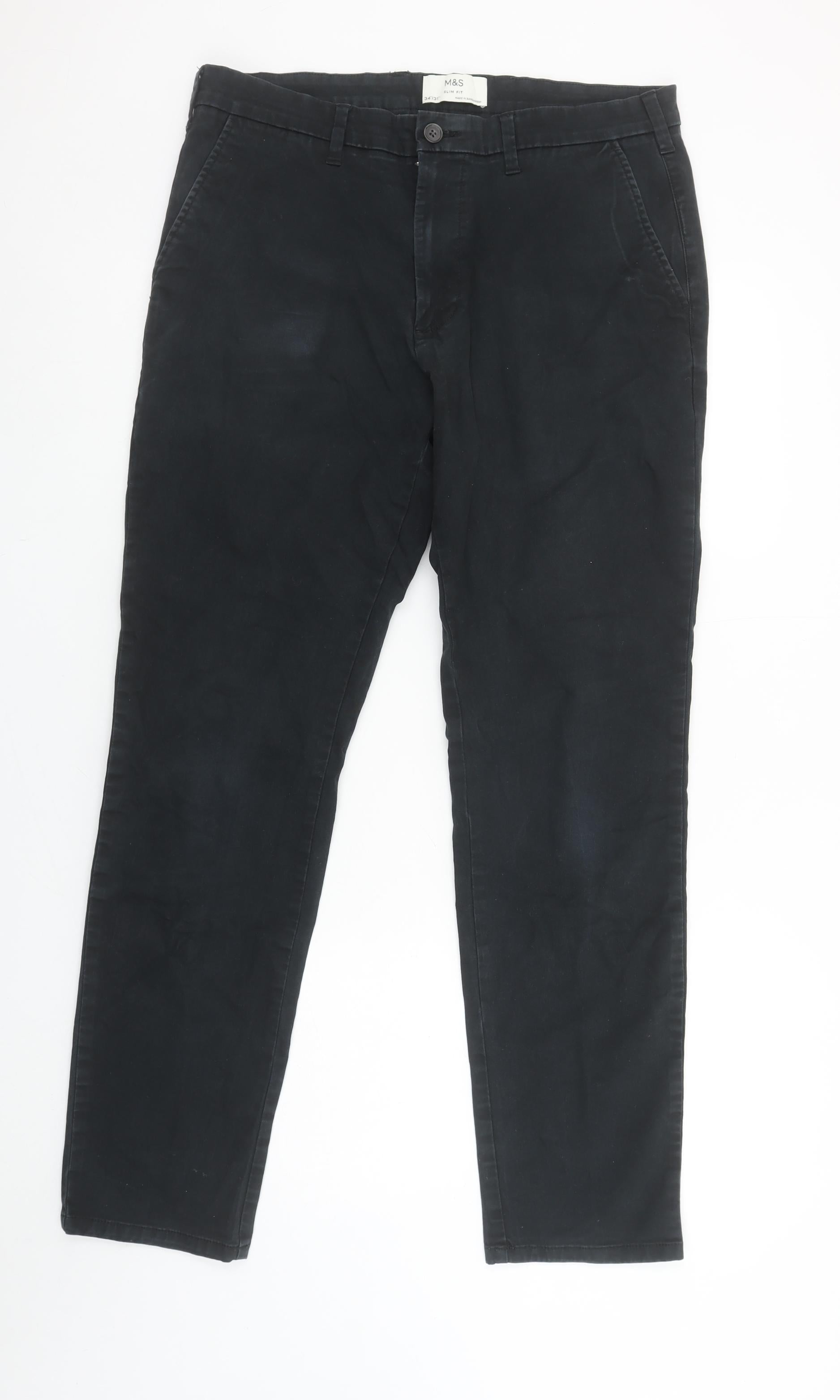 Marks and Spencer Men's Black Slim Fit Chino Trousers Size 34R