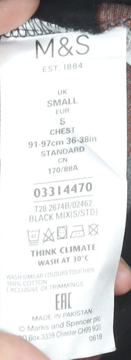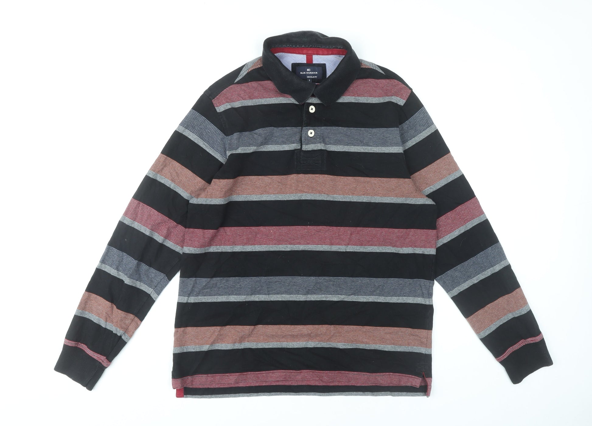 Marks and Spencer Men's Black Striped Long Sleeve Polo Small