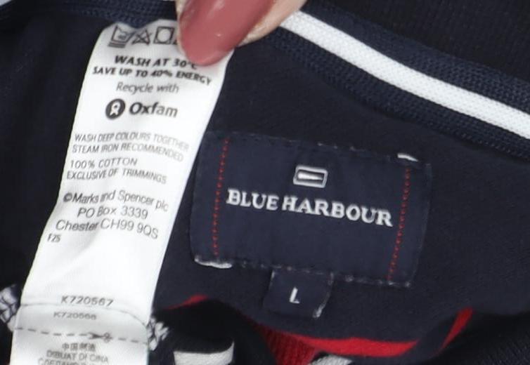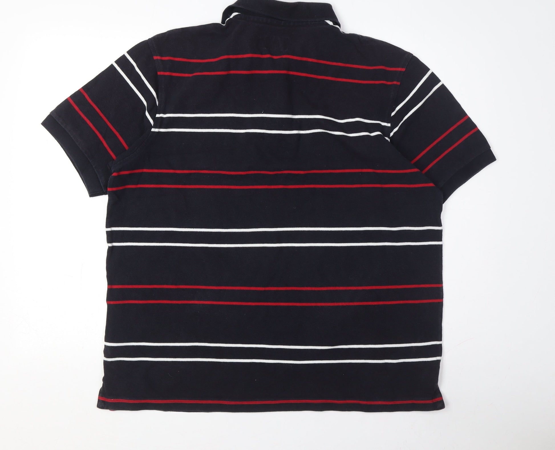 Marks and Spencer Men's Black Striped Polo L Cotton