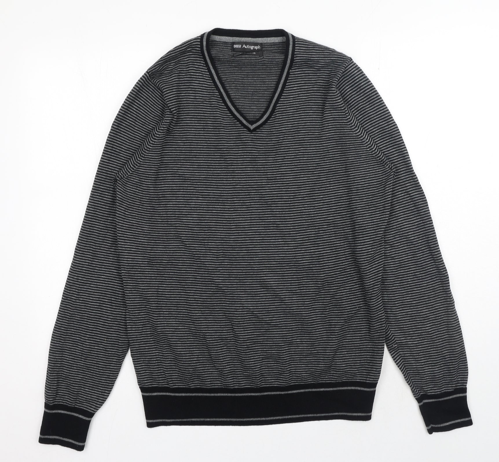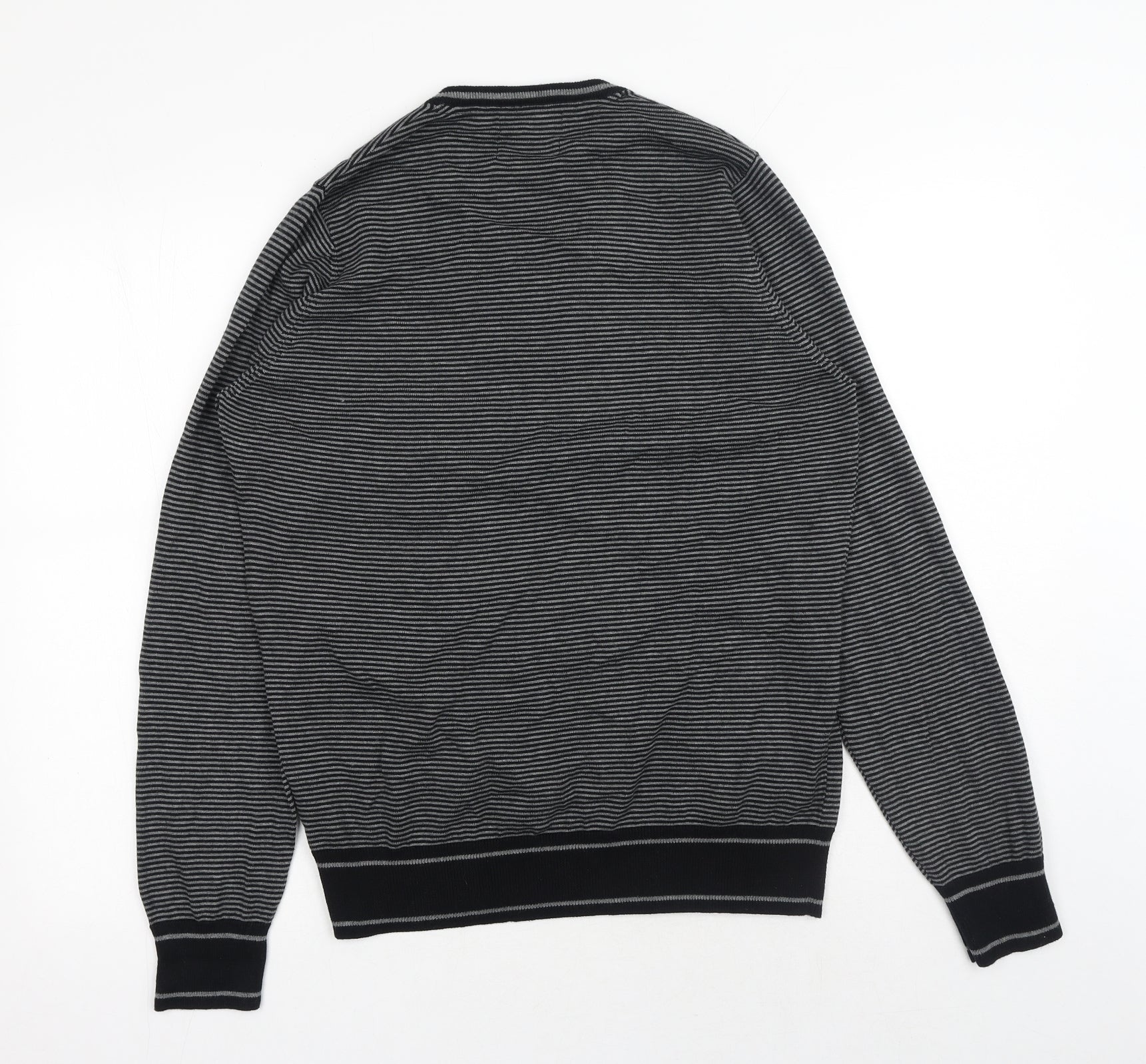 Marks and Spencer Mens Black V-Neck Striped Cotton Pullover Jumper Size S Long Sleeve