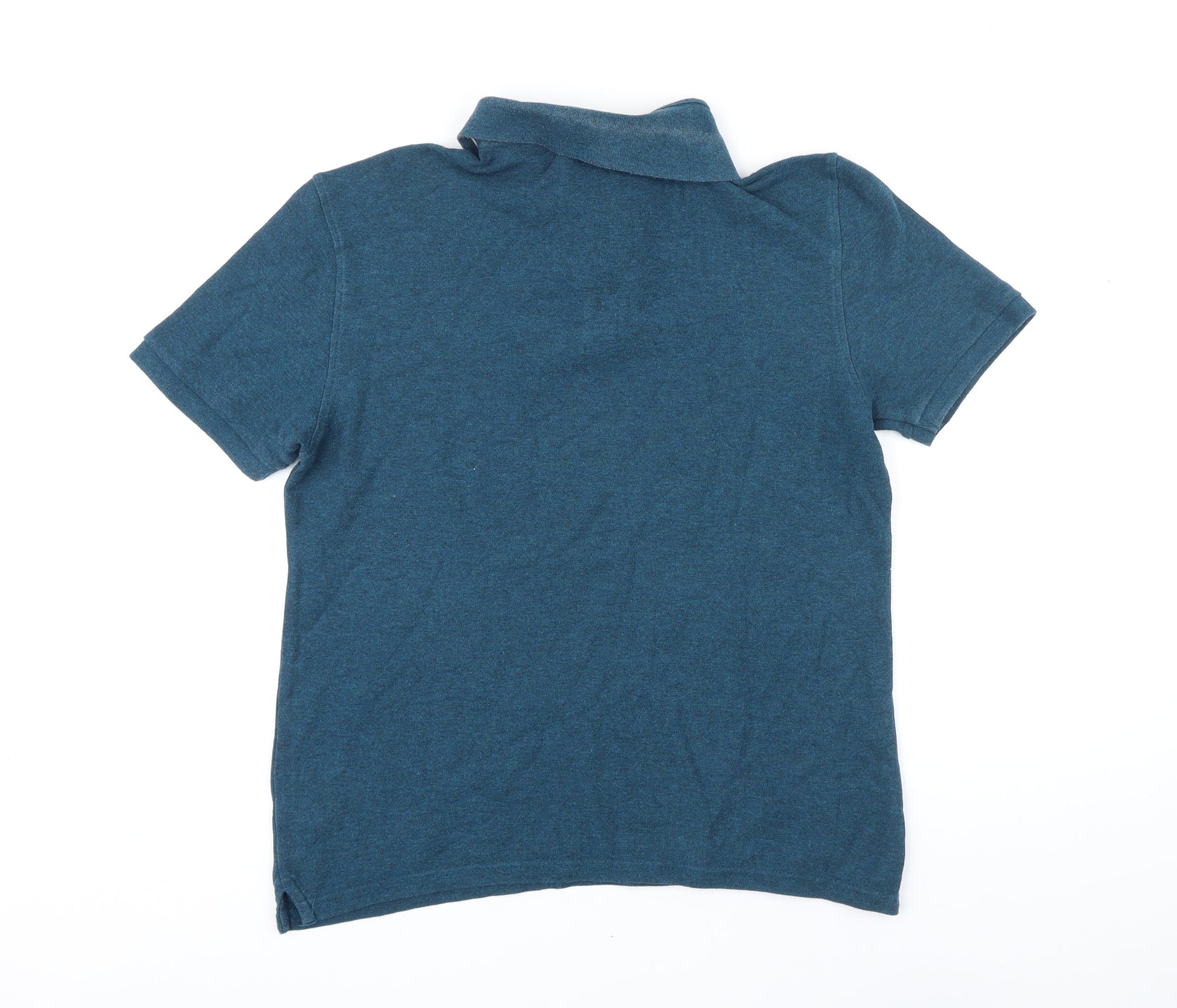 Marks and Spencer Mens Blue 100% Cotton Polo Size M Collared Button