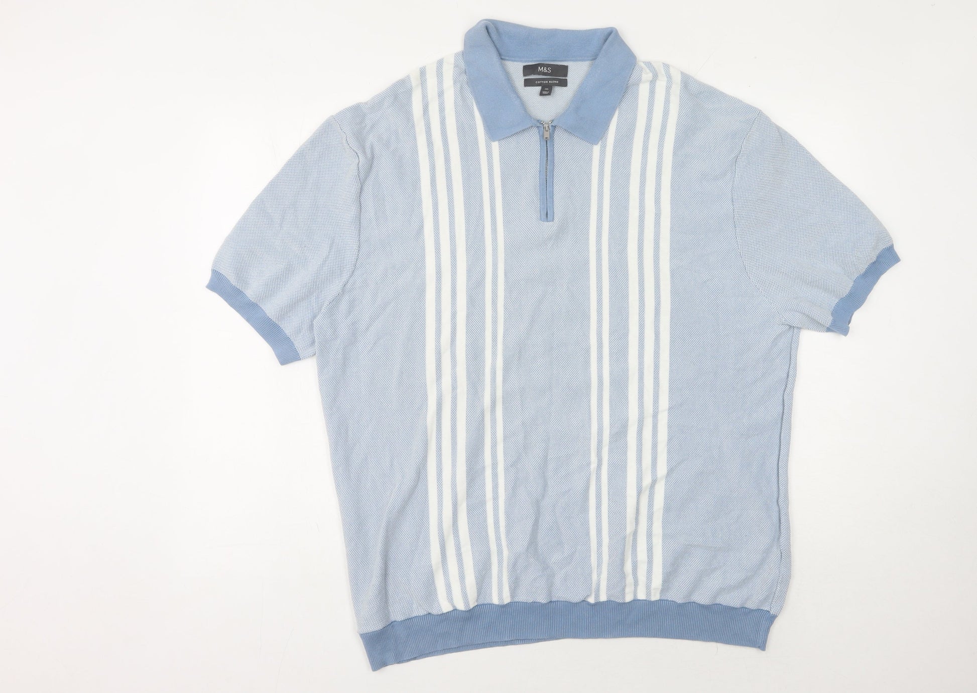 Marks and Spencer Men's Blue 2XL Striped Polo